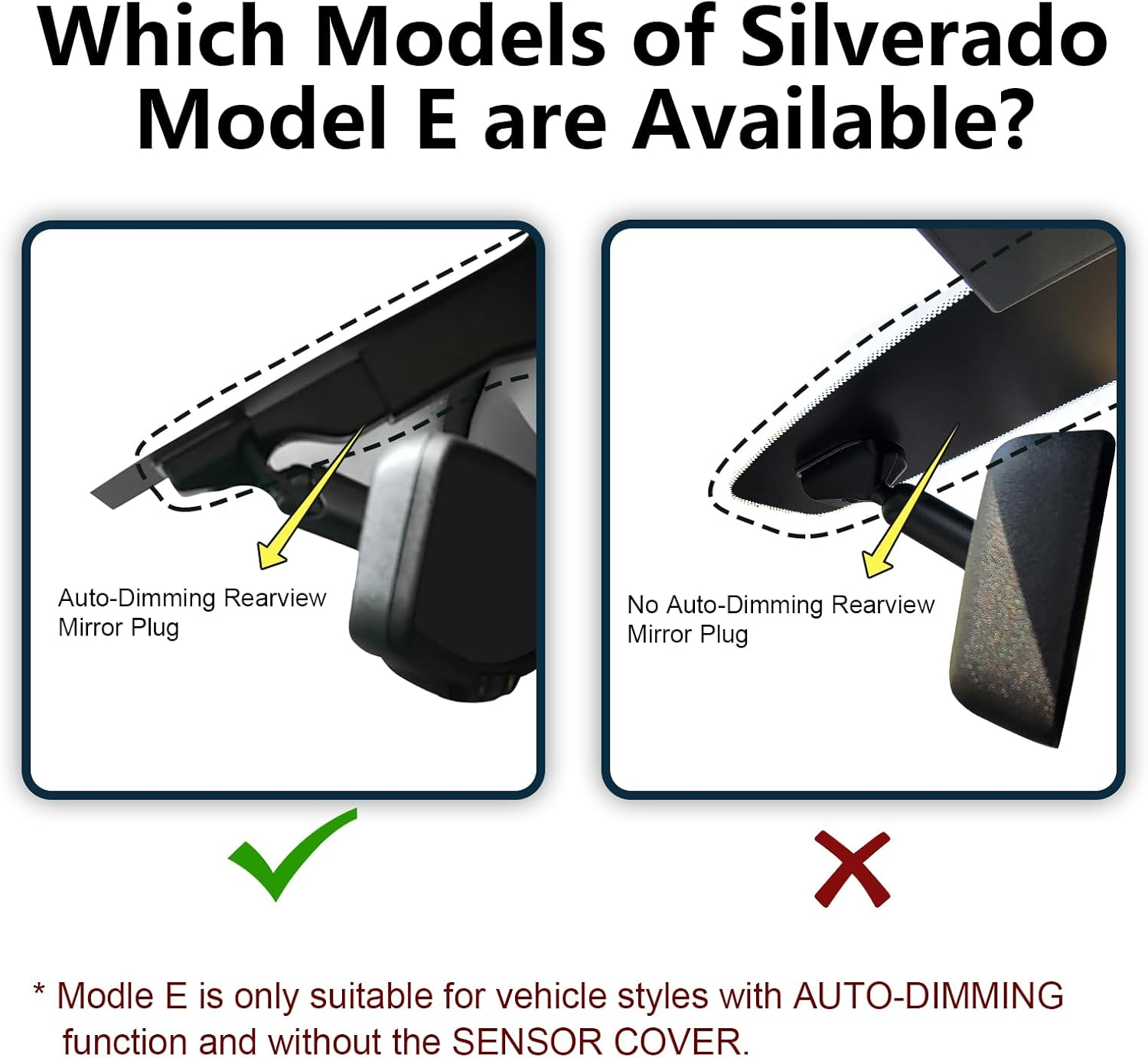 Store New Arrivals Add to Favorite View Feedback Contact Front 4K & Rear 1080P Dash Cam Fit for Chevy 4Th Gen Silverado 1500 2022-2025, HD 2024 2025 WT LT RST Trail Boss High Country ZR2 (Model C), Integrated OEM Look, UHD 2160P Video, 128GB Card Description 【PLEASE CHECK YOUR MODEL CAREFULLY】 THE WRONG MODEL CANNOT BE INSTALLED SUCCESSFULLY. Several buyers were unable to install it properly because they bought the wrong model.Seriously compare THE SECOND PICTURE and THE Third PICTURE. If you are still not sure which model is suitable for your vehicle style, please contact us at any time. Please take a photo of your original car sensor cover. and send it to us, and we will confirm it for you 【Silverado Model E】Modle E is only suitable for vehicle styles with AUTG DIMMING function and without the SENSOR COVER, The Amazon asin corresponding to Modle E is B0D2NPHDNQ and B0D2NVTT98 【Custom fit for Chevrolet Silverado】Mangoal Front 4K and Rear 1080P dash cam can fit perfectly behind the rear view mirror like original. No messy wiring exposed, no complicated rewire at all. Perfectly intergrated with Chevrolet Silverado 1500 2022-2025, 2500 HD/3500 HD 2024 2025 vehicle styles ,Such as WT, LT, RST, Costom Trail Boss, LTZ, LT Trail Boss, High Country, ZR2.(Model C); To purchase Chevy Silverado EV 2024 2025, please search B0DT3LK3GD or B0DT3P927M 【Front 4K and Rear 1080P】Our dual dash cam which records video of up to Ultra HD 4K(3840x2160)+FHD 1080P resolutions. It helps you to read the key details like road signs, vehicle number plates etc. To reduce the blind areas it has the front wide angle of 170 degree and rear wide angle of 140 degree. This helps you during unexpected circumstances like collision to retain and present evidence. 【Built-in WiFi, free App】The built-in WiFi owns higher-definition and faster download speed, and the free user-friendly App makes it convenient to view realtime videos on your phone, download or transfer important footage to PC. You can also share videos on social media with friends or families whenever you want. 【PLEASE NOTE】The installation video contains 2 parts, first part is getting power by Auto-Dimming Rearview Mirror Plug Power Adapter, the second part is getting power by OBD Power Adapter. If your car has Auto-Dimming function, you can choose the first method. Considering that if your car does not have Auto-Dimming function, we specially Arrange the second way of getting power 【What you get】Mangoal OEM Look 4K Dashcam x1, Rear Cam x1, Rear Cam Cable x1, 128G MircoSD Card x1, User Manual x1, OBD Adapter x1, Auto-Dimming Adapter x1, Crowbar x1, Strap x2, worry-free 12-month warranty, and friendly customer service. Product Description NOTES: 1. The goods in stock are all the latest version of the software, and you can manually set the startup tone to turn off; For sold products, you can contact MANGOAL support to manually upgrade the software. 2.Mangoal dash cams are only compatible with specific vehicle model, the wrong model can't fit.It doesn't support to add a rear camera separately if you've already had the single front camera! Because the PCB boards are different. 3.The camera's WiFi is not remote. Please download important clips to your phone while in the car and engine is on if needed. 4.Why is the preview screen of the camera not clear when viewed through the APP? The image quality of the APP preview interface is specially compressed for smooth APP experience. Click on the APP "Camera File" to view the original AHD quality video. 5.Featured with sound recording function, which can be turned on/off at mangoal APP setting. 6.Mangoal OEM style dash cam does not have physical buttons for traditional camera settings. How to set camera related functions? The setting function Mangoal of traditional cameras is available. We implement it through SkyCamm APP setting. We have prepared detailed operating instructions and the operation is simple. 7.Packed with 128GB MicroSD card and support maximum 256GB.MANGOAL OEM style dashcam can support up to 256GB memory card, but 4K HD has higher requirements for memory cards and requires U3 C10 grade genuine memory cards. Mangoal OEM Style Custom Dash Cam Add to Cart Add to Cart Add to Cart Add to Cart Add to Cart Add to Cart Add to Cart Customer Reviews 4.3 out of 5 stars 124 4.3 out of 5 stars 98 4.1 out of 5 stars 93 4.3 out of 5 stars 22 3.8 out of 5 stars 33 4.0 out of 5 stars 43 4.0 out of 5 stars 33 Price $249.99 $ 249 . 99 $249.99 $ 249 . 99 $269.99 $ 269 . 99 $269.99 $ 269 . 99 $169.99 $ 169 . 99 $169.99 $ 169 . 99 $169.99 $ 169 . 99 Camera Type Front 4k + Rear 1080p Front 4k + Rear 1080p Front 4k + Rear 1080p Front 4k + Rear 1080p Front 4k 2160p Front 4k 2160p Front 4k 2160p Wi-Fi(APP Control) ✔ ✔ ✔ ✔ ✔ ✔ ✔ Mounting Type Windshield Windshield Windshield Windshield Windshield Windshield Windshield SD card included 128GB Card 128GB Card 128GB Card 128GB Card 128GB Card 128GB Card 128GB Card Loop Recording ✔ ✔ ✔ ✔ ✔ ✔ ✔ Is there only one dash camera model for a vehicle style? This is uncertain. Which modle of dash cam is installed depends on the rearview mirror in your car and the cover behind the rearview mirror. Select the corresponding MANGOAL dash cam model. Product listing picture and text have detailed description. When I am at home, can my mobile phone connect to the dash cam's WIFI? First of all, The camera's WiFi is not remote,Cannot connect remotely.Secondly, If you need to connect to the recorder WIFI at a close distance, provided that the engine is on and the recorder is turned on normally. If I place an order for the front camera host package now, can I purchase the rear camera separately later? No, these are two completely different sets of cameras. Can a mobile phone be connected to CarPlay and camera wifi at the same time? The phone cannot be connected to CarPlay and dash cam WiFi at the same time, but the camera records automatically when car st