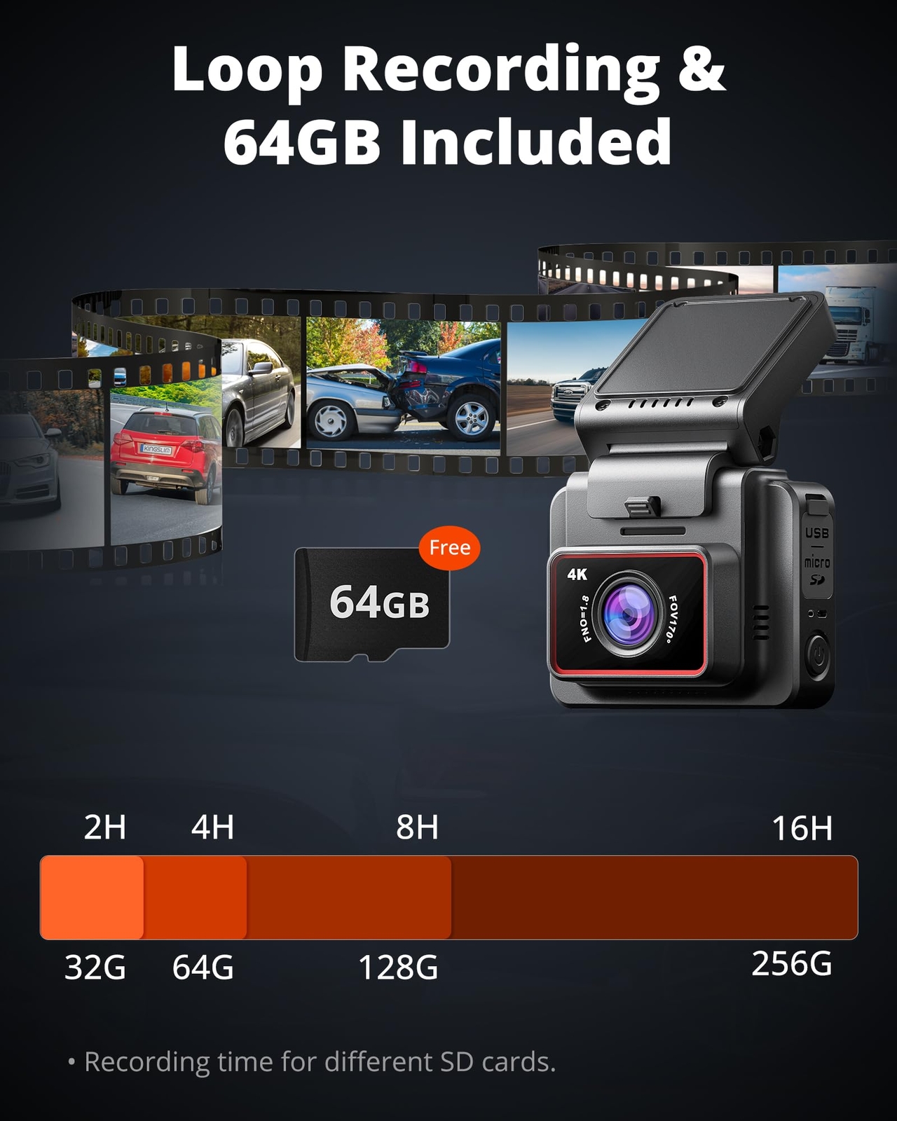 Kingslim Dash Cam Front, 4K Dash Camera for Cars with Free 64GB SD Card, WiFi GPS Mini Car Dashcam Built-in 170 Degree Night Vision, Parking Monitor, WDR, Motion Detection 4K FRONT CAR CAMERA WITH SD CARD - The front-facing single-lens dashcam supports 4K 2160P high-definition video and picture shooting, a 170° wide-angle shooting angle, and can automatically start and shut down as the car starts and shuts down. The package includes a 64GB SD card and installation tools, which can be used directly without purchasing any additional accessories. PAIR SMARTPHONES WITH ADVANCED WIFI - With the built-in WiFi module, the smartphone can realize wireless APP operation control of the dash cam through WiFi connection. Supports live view, downloading and saving video files, and changing camera settings within the APP. AUTO EMERGENCY LOCK & LOOP RECORDING - Loop recording will automatically overwrite the oldest video file with the latest when the camera memory is full to ensure uninterrupted recording of the machine. Files recorded when the emergency recording function is triggered will be automatically locked to prevent them from being overwritten by the loop recording function. GPS DASHCAM - Supports GPS function, which saves positioning, route, speed and other information in the recording file for emergencies. Affected by the GPS satellite signal, the data will be biased in an environment with poor signal. 24H PARKING MONITOR - Built-in motion sensor and vibration sensor. When the vehicle is hit by an abnormal impact or an object approaches at a close distance, the camera will be automatically turned on and the video will be captured. If you want to use this function 24 hours a day, you need to use hardwire kit to provide continuous power supply to the dashcam. Kingslim Dash Cam Front, 4K Dash Camera for Cars with Free 64GB SD Card, WiFi GPS Mini Car Dashcam Built-in 170 Degree Night Vision, Parking Monitor, WDR, Motion Detection. SHIPPING - We offer FREE shipping on all orders! - We ship within 3 business days of payment, usually sooner - We only ship to the lower 48 states, no APO/FPO addresses or PO Boxes allowed International buyers – please note: Import duties, taxes, and charges aren't included in the item price or postage cost. These charges are the buyer's responsibility. - Please check with your country's customs office to determine what these additional costs will be prior to bidding or buying. - We have confidence in our products, but if you are not fully satisfied please contact us within 30 days of purchase and you will get full refund. * Order Cancellation Policy ** You can return a product for up to 30 days from the date you purchased it. 1. The seller reserves the right to cancel the special case only due to eBay cancellation fee. 2. The decision of seller is the final. 3. The seller will respond to the cancellation request within 2 business days. Please wait for the result of cancellation. 4. In case the cancellation is not completed by some reasons, the buyer can follow the options below to get the refund. 4.1 The buyer can reject the item when it arrives. 4.2 The buyer can send the item back to the seller within 30 days If the buyer receives item (USA Shipment ONLY). The seller will provide the FREE return label to the buyer when the buyer opens " Return Item" case on eBay by using the reason as "Change my mind" ONLY. 5. When buyer has placed the order. The order will be processed and completed by automatic warehouse system within 5 minutes. In case that buyer sends the cancellation request after 5 minutes of placing the order, the request will be rejected. **Sending direct message to cancel the order is not allowed for every case.* Return Policy For the return case - If buyer would like to return the items for refund or replacement, please CONTACT SELLER to receive the free return label from seller. The refund or replacement will be processed with the tracking number of return label which is provided by seller only. The other ways of return which are not approved by seller will not be processed for the refund or replacement.