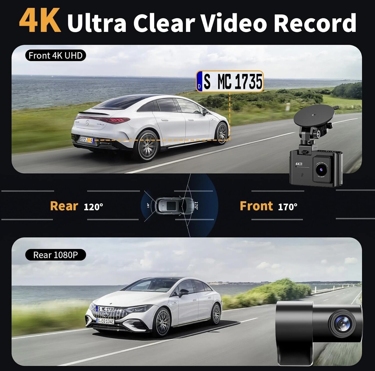 4K + 1080P Dual Recording Dash Cam (Front and Rear):The WANLIPO A13 front and rear dash cam captures crystal-clear footage in Ultra HD 4K (3840*2160P) for the front and Full HD 1080P for the rear. This ensures that essential details, such as road signs and license plates, are easily visible. With a 170° wide-angle front lens and a 120° rear lens, the dual dash cam minimizes blind spots, providing full coverage to preserve critical evidence during incidents such as collisions 5GHz WiFi & Smart App Control:Easily connect the A13 front and rear dash cam to your smartphone via WiFi and control everything through the "Viidure" app. Compatible with both iOS and Android, this dash cam allows you to view, playback, and download recordings seamlessly. With 5GHz WiFi, enjoy fast video transfers from the dual dash cam. The app also enables one-click sharing of your footage, making it perfect for reliving and sharing memorable drives Loop Recording & 64GB SD Card:The WANLIPO A13 front and rear dash cam features intelligent loop recording, ensuring you never miss a moment, as it automatically overwrites the oldest files when storage is full. This dual dash cam comes with a 64GB SD card, allowing you to start recording immediately and continuously without worrying about running out of space. Equipped with a premium F1.5 aperture and a 6-layer optical lens, this dash cam's WDR technology enhances clarity in low-light conditions Built-In G-Sensor:The 4K dash cam is equipped with a high-performance G-sensor, designed to detect collisions or abrupt events, and optimized to detect even minor impacts. When the G-sensor detects an impact, the dash cam automatically locks the relevant footage, ensuring that critical recordings are not overwritten during loop recording. This feature provides reliable protection by preserving essential video evidence in the event of an accident, making it an essential safeguard for driving. Parking Surveillance:The front and rear dash cam is equipped with advanced low-light capture technology, ensuring clear footage in dark conditions for improved safety. Its parking surveillance mode automatically activates recording when any vibrations or impacts are detected, offering protection for your vehicle. Whether parked or in motion, this dash cam captures crucial moments, safeguarding your vehicle against potential incidents and ensuring it is always secure Compact & Easy to Install: The front and rear dash cam features a sleek, compact design that simplifies installation. Its small size allows for discreet mounting behind your rearview mirror, ensuring an unobstructed view while driving for a seamless and comfortable experience. With a 2.0" IPS screen, the dash cam provides sharp, clear visuals, allowing you to effortlessly navigate settings and view recordings