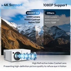 Product Description Feature: 【 Latest Upgraded 1080P Projector 】This 2024 Newest Mini Projector has 1280*720 resolution, 12000 Lumens high brightness, HD lens and 60,000 hours long lamp life, which allow you to enjoy wonderful visual feast more than 20 year. Its LCD color calibration technology and 9000:1 high contrast can restore more intricate color details than other mini projectors, bringing you a real, dynamic and color vibrant 1080P HD projection image quality. 【 Android 12.0 system 】 Built on Android TV 12.0 system. It can run apps like Netflix, HBO Max, Hulu, Prime Video, Apple TV, Flixster, YoutubeTV, you can also download new apps from Appstore. 【 Faster & Stable 5G Dual WiFi Connection 】This projector is equipped with the latest 5G WiFi technology, which can effectively avoid signal interference, ensure stable signal and fast transmission speed. So you can watch videos or play games smoother and more stable! 【 Mini Design & Large Screen Size Experience 】The mini projector adopts the hand belt design, which is stylish and portable, If you move, travel or camp a lot, this is your best movie watching companion! Its small body is powerful enough to provide a viewing size from 30" to 150" with the projection distance between 1m and 4.5m (The best viewing distance is 5-10 feet). You can get a clear and high quality image by adjusting the manual focus and keystone correction ±40°. With the remote control, the screen size can be zoomed from 50% to 100% without moving the screen, which is very convenient! 【 Bluetooth 5.0 Function & HiFi Stereo Speaker 】Built-in HiFi stereo surround speaker restores the original audio fidelity, so you are able to have an excellent listening experience without connecting external speakers. What's more, you can easily connect it to Bluetooth headphones, speakers and other audio devices to enjoy theater-level surround sound at home. 【 Multiple Devices Compatible 】Equipped with HDMI, Audio, AV and USB interfaces, this full HD video projector is compatible with TV Box, TV Stick, PC, Laptop, Tablet, Smartphone, Chromecast, U Disk, PS4, Xbox, Camer, Speaker, and more. Thanks to the wide compatibility, it can meet your most daily requirements - home theater, video game, party, home, sports matches. Specification: 1. Brightness: 12000 Lumens, Over 230 ANSI 2. Contrast Ratio: 9000:1 3. Projection Size: 30~150" 4. Projection Distant: 1-4.5M 5. Features: Built-in Speakers, Portable, Remote Control, Wifi, Bluetooth, Timer Function 6. Color: White 7. Aspect Ratio: 4:3/16:9 8. Keystone: ±40° Keystone Correction 9. Zoom: 50%⇌100% 11. Lamp Life: 60000 hours 12. Resolution: 1280 x 720p RGB, 1080p 13. Connectivity: 2.4G & 5G Wifi, BT 5.0, HDMI, 3.5mm Audio, USB 2.0, AV 14. Compatible Operating System: iPad, Android, iOS/Mac, Windows 15. Installation: Tripod Stand Mount/Table Placement Package List: 1x WiFi Projector 1x Remote Controller 1x Power Cable 1x HDMI Cable 1x Tripod Stand 1x User Manual On Oct 22, 2024 at 03:00:29 PDT, seller added the following information: