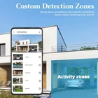 【4K HD Image & Color Night Vision】Outdoor Wireless solar security camera gives you 4K (2560 x 1440) Full HD, 8MP images and videos, sharper than other 1080P security cameras, day and night. Choose from 3 night vision modes. The built-in CMOS sensor and IR lamp automatically detect ambient light and switch to color night vision mode for sharper detail and color images, even up to 65 feet of darkness 【Dual Lens & 360°Coverage】This outdoor wireless surveillance camera is equipped with two lenses that support 355° horizontal and vertical 110° PTZ rotation, providing you with 360° full protection with few blind spots. You can also manually rotate the security camera to see in different directions and remotely monitor any corner via the app to protect your belongings and family! 【2.4Ghz WiFi & Solar/Battery Powered】Solar security cameras wireless outdoor supports 2.4Ghz WIFI connection (5Ghz not supported). With the solar panel, just connect the camera to the solar panel for continuous power supply. Built-in high-capacity battery allows continuous power supply through the battery even in bad weather or low sunlight, providing uninterrupted protection for your home for 365 days. 【PIR Motion Detection & Auto Tracking】Outdoor security camera Built-in sensitive PIR motion sensor effectively distinguishes human from other things and reduces false alarms. Once any abnormality occurs in the monitored area, you can receive a real-time push on your mobile phone. The solar camera outdoor wireless automatically tracks the movement of intruders and activates the alarm sound and spotlight to deter unwanted visitors.Support custom detection areas, only focus on key areas. 【Auto Tracking & 6X Hybrid Zoom】Cette caméra de surveillance peut réduire le taux de faux positifs de 99,99% et commencer à surveiller automatiquement lorsqu'une activité humaine est détectée. Lorsque la fonction de zoom hybride 8X est activée, la caméra change automatiquement l'objectif en zoom optique 2x ou en zoom numérique 6X (s'il est réglable manuellement). 60 secondes après la disparition de la cible, la caméra externe revient automatiquement à l'écran d'origine. Product Description Color Night Vision The solar camera supports 3 night vision modes: full color, black and white, and smart. Capture 4K HD night vision and never miss an important moment, day or night. Two-Way Audio You can talk to your family or warn intruders. anywhere in real time. So convenient for you to monitor and communicate with people! More Stable Signal Equipped with dual 5dBi antennas, the camera enhanced stronger wifi signal and improve 50% more installation distance above regular wireless camera. Always brings you better network performance. Custom Alarm Area Supports customization of alert zones. Receive alerts for critical areas only. Reduce redundant alerts.Great helper for guarding your home and family. 8X Zoom The wifi camera supports 8X zoom, just open the app and you can see more details and a clearer overview regardless of distance. 8MP pixels ensure clarity while also supporting 8X enlargement for distant details Solar and Battery Powered Built-in durable rechargeable battery and solar panel for non-stop power supply, reducing the hassle of frequent manual charging. Flexible and Secure Storage All recordings are encrypted storage in micro SD card up to 256G(Not Included) or 3 days Trial cloud. You can easily view and playback everything matters. Experience peace of mind with privacy mode.