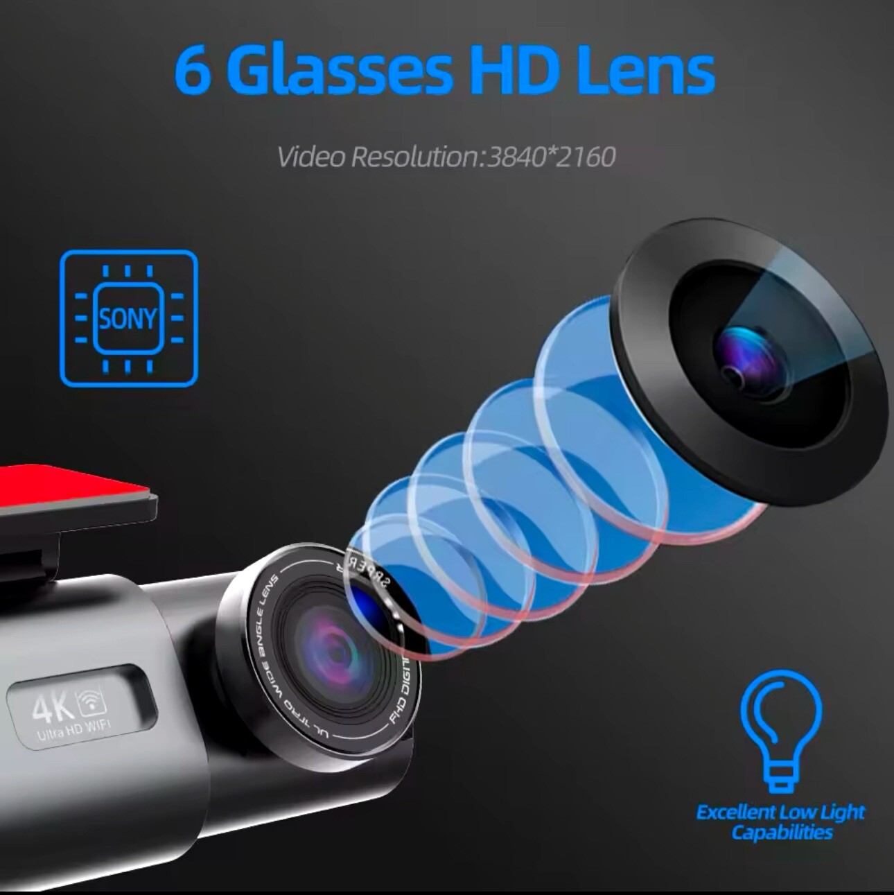 •Model Number: B53P • Installation Type: Portable Recorder • Chipset: Novatek 96670 • Imaging sensor: Sony IMX415 •Camera Lens: Front + Rear; 6 Glass + 4 Glass; 170 Degree Angle + 140 Degree; F1.6 Aperture + F2.0 Aperture • Video Resolution:Front: 3840x2160@25FPS; Rear: 1920*1080P@25FPS •Please note back camera is not included. •OSD Languages: English, Russian, Dutch, French, Spanish, Portuguese, German, Italian, Chinese, Japanese, Korean, Polish, Thai, Vietnamese,tc..... (You can change the desired language on the app) •Memory Card: Micro SD Card 32G •Add Features: Support Night Vision, Wifi, GPS