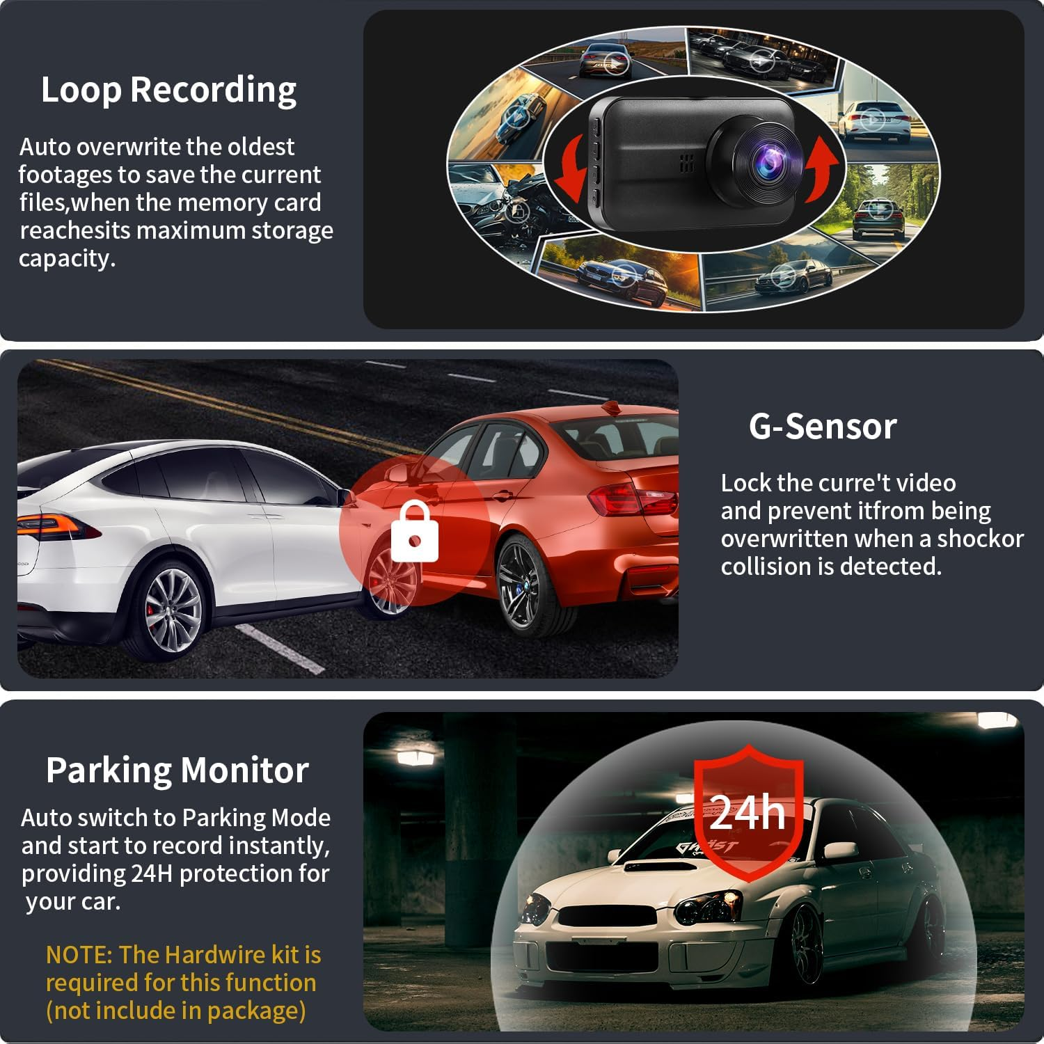 Store New Arrivals Add to Favorite View Feedback Contact Dash Cam Front and Rear,4K+2K Dual Dash Cam,3.0" IPS Screen,Wi-Fi & App Control, 64GB SD Card,3-Axis Gravity Sensing,170°Wide Angle,Loop Recording,Night Vision,Parking Mode. Description 4K+2K Dual Dash Cam:Capture images from front and rear cameras at the same time. The front camera records at 2160*1440P@30fps and the rear camera records at 1920*1080P@30fps, capturing every detail on the road and ensuring clear recording of the road conditions in front and behind. To minimize blind spots,It has the front wide angle of 170 degree and rear wide angle of 160 degreewhich,allowing you to see clearer images from any angle Built-in WiFi & APP Control:This 4K Dash Cam Front and Rear supports the free APP for Android or iOS smartphones.Easily access the recorded video, you can also download and share the recorded travel scenery and exciting moments to your friends and family directly from your smartphone in the app. Loop recording and,3-Axis Gravity Sensing:This Dash Camera for Cars, can automatically overwrite the oldest video with the latest video, achieving seamless loop recording even when the SD card is full,When the car camera ,3-Axis Gravity Sensing detects a sudden collision, it will lock and save the collision video, locking it as important evidence and not being overwritten. Superior Night Vision:Driving recorder adopts an exceptional optical lens with an ultra-large F1.5 aperture and 6 layers, and is equipped with HDR/WDR technology to clearly capture important details even in low light conditions. Excellent technical service team: If you encounter any problems with installation, operation or connection errors, you can contact us, we are ready to help you solve any problems, we will get back to you as soon as possible within 24 hours. Product Description 3"2K Full HD IPS Screen 3"Super large LCD that can show the real-time image helps you see every detail as clearly as possible when playing back and brings a better visual experience. High Dynamic Range This car cam with the HDR technology, the dash camera delivers clear videos with artistic qualitieseven in backlight or low lightsituations. Wide-Angle The 170° wide-angle front camera quickly covers four channels without visual blind spots, providing you and your vehicle with all-around protection. The 160° wide-angle,waterproof rear camera helps capture more details of the road around you. This ensures a panoramic recording; never miss an event ahead and the rear of your vehicle. G-Sensor Emergency Lock It automatically locks current video to prevent from loop recording when the car camera detects sudden shocking, which won't be deleted.With built-in G-Sensor, current footage will be locked and protected in the SD card. Seamless Loop recording Seamless Loop Recording creates video clips,automatically overwrites the oldest fle to save the current file when the memory card is full..Infinite loop recording, never miss any moment. You can choose the size of each file as 1 minutes, 3 minutes, 5 minutes. Superior Night Vision With the HDR and super night vision technology,our dashboard camera captures every vivid moments such as license plates and road signs clearly even at night. F/1.5 largest aperture available , 6-glass wide angle lens and high sensitivity image sensor ensure better image quality and more natural details when driving at night. ABOUT US Welcome to our Ebay store! FAST FREE SHIPPING ON ALL PRODUCTS! Please look through our selected quality items to see if you can find what you are looking for or to discover new and exciting things. Our main goal is to bring you the best services which includes quality products at the best prices, fast free shipping and great customer support ! SHIPPING We ship to the Lower 48 States only (Does NOT include Hawaii or Alaska) We cannot ship to PO Boxes/APO's We cannot combine shipping. No Local Pickup. NOTE: we ship from multiple locations We offer FREE STANDARD DELIVERY 2-8 business days within USA. The item will be shipped directly from our supplier. RETURNS We have a NO returns policy on this product , but we will make sure you receive it in perfect condition( in case of damage on arrival let us know within 2 days for a solution/replacement). PAYMENT We accept PayPal. CONTACT US This page content is yet to come Please ad us to your favorite seller and visit again later Thank You CUSTOMER SATISFACTION If you have a question about a product not otherwise answered in the item description, please contact us via eBay messages first and allow us the opportunity to help you. Your satisfaction is our #1 priority ! In any situation before opening a case please do contact us for a resolution!!