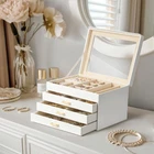 Compact and Spacious Storage: Featuring a thoughtfully organized 4-layer design, this jewelry box offers surprisingly generous storage without being bulky. It includes dedicated slots and compartments for your jewelry, from rings and earrings to necklaces and bracelets, making everything remains tidy, accessible, and tangle-free High-Quality Craftsmanship: Built with durability in mind, the jewelry box is constructed from premium materials, including a soft velvet interior that protects your pieces from scratches. Its sturdy build and neatly finished stitching provide confidence in its long-lasting use Elegant Design and Aesthetic Appeal: The jewelry box boasts a sleek, modern appearance with a classic, understated charm. Its aesthetic, highlighted by a top, gold handles, and cream faux leather, exudes sophistication and fits seamlessly with any décor. This chic design ensures it looks stunning on any vanity or dresser Flexible and Practical Compartments: It has many random compartments it has to keep things from tangling. The jewelry box includes modified compartments, allowing for customized storage solutions to suit your collection perfectly Thoughtful Treat: Its versatile nature makes it ideal for women, serving as a practical jewelry organizer for years to come, whether for personal use or as a treat. It was the great size starter jewelry box for the teen girls. This beautiful jewelry box will be a treasure long into their adult lives Note for Use: 1. Handle top lid with care, avoid drops and impacts. 2. For any odor after unboxing, ventilate for 2-3 days. Keep desiccant sealed; not for consumption.