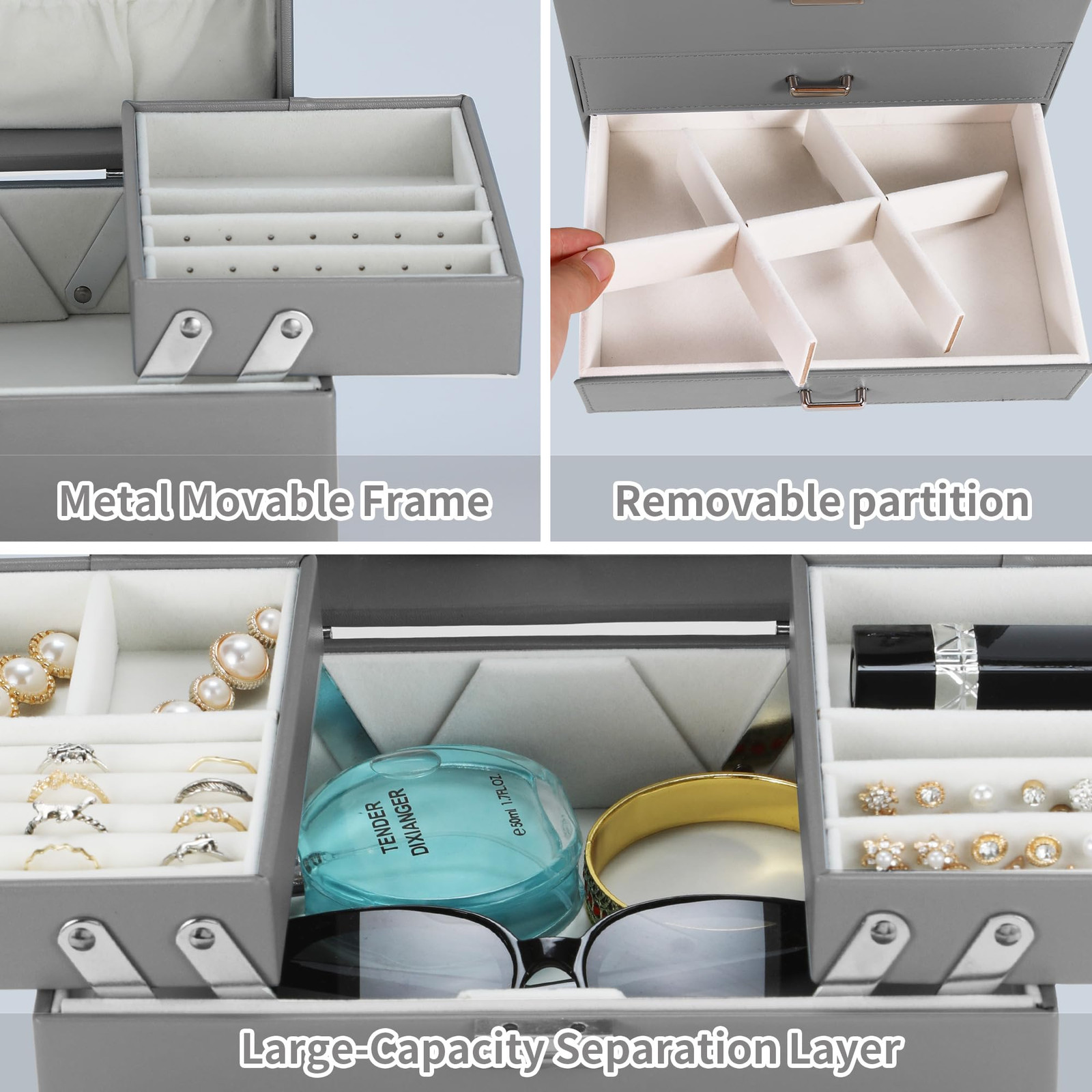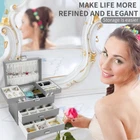 Multifunctional Jewelry Box: The large jewelry storage box has 5 ring slots, 9 ring boxes, 10 necklace hooks, 26 ear stud holes, 2 adjustable space compartments, 2 Drawers. The jewelry organizer box has a variety of designs and compartments, which can store all your jewelry, whether it is a large piece of jewelry or a small earring, there is a place to store it Advanced Materials: This jewelry box for women is made of PU leather, which is dirt-resistant, waterproof, non-deformable and easy to clean. The inner lining is wrapped in comfortable and soft velvet to provide all-round protection for your jewelry, and with a smooth and exquisite metal buckle for easy opening and closing Space-Saving Jewelry Organizer: With our leather jewelry box, all your jewelry will be organized and easy to access. From then on, you have a bright dressing table that makes your room look more tidy and elegance. Moreover, the classification design of our large jewelry box organizer allows you to reduce the search time New Upgrade: The size of this jewelry storage box is enlarged, 9.1 x 6.3 x 7.48 inches when closed. This girls jewelry box has undergone a new upgrade in the functional partition, making full use of every place to store your rings, necklaces, bracelets, earrings, earrings, hair clips, watches and other accessories Ideal Jewelry Gift Box: This velvet jewelry organizer looks elegant and considerate. This jewelry box is a great gift for Valentine's Day, Birthday, Mother's Day, Christmas or Wedding. The jewelry storage case with elegant appearance, suitable for all women and girls. Great gift choice for mother, girlfriend, wife, daughter, friend