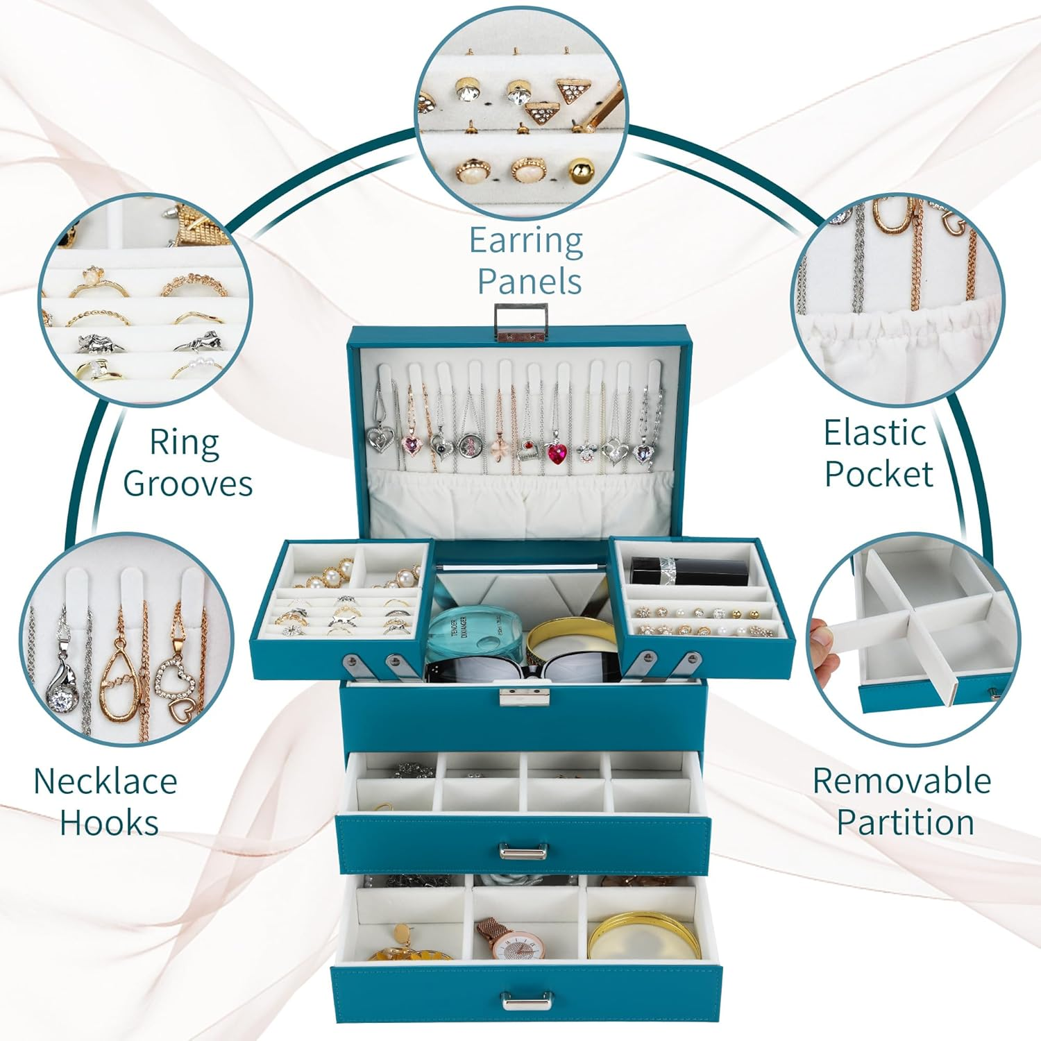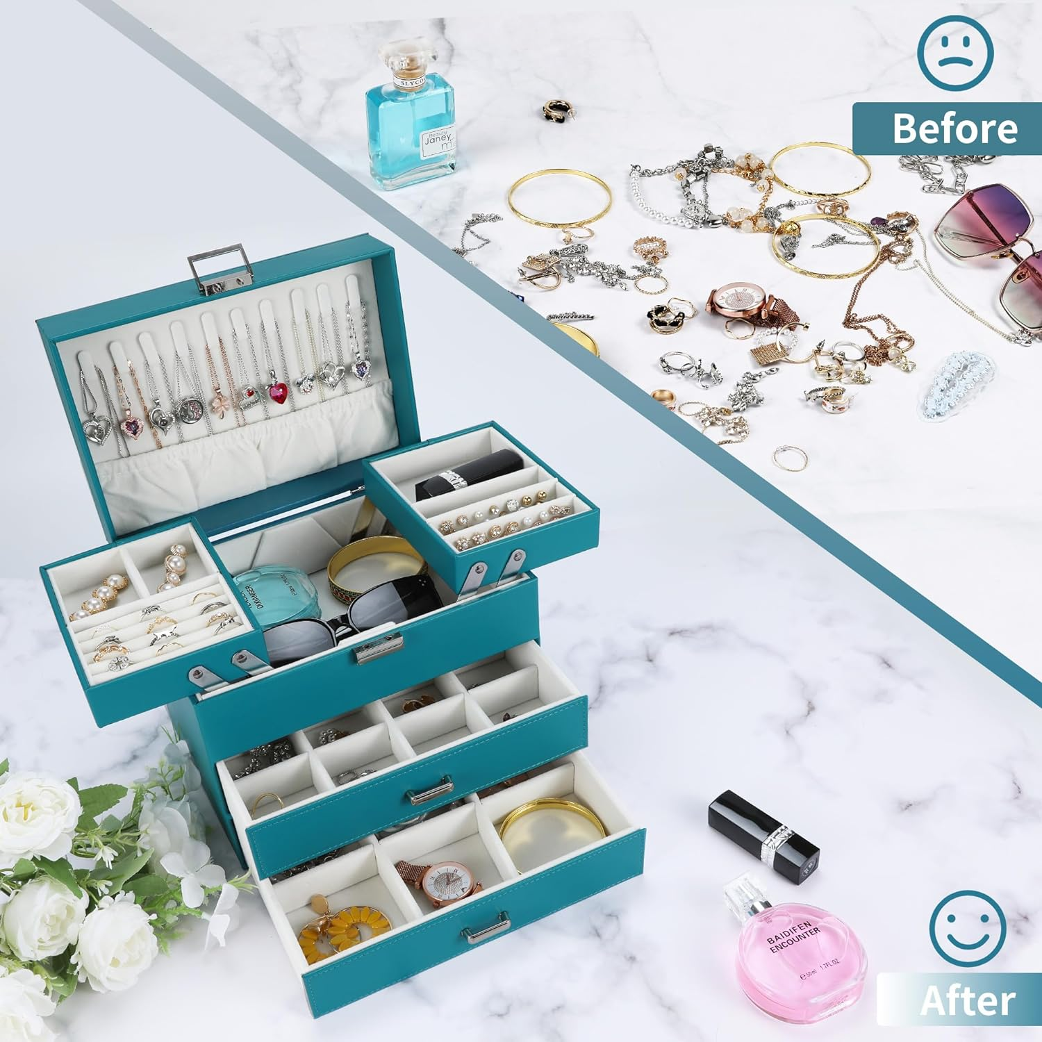 Store New Arrivals Add to Favorite View Feedback Contact Jewelry Box Organizer, Jewelry Holder Organizer Box, 4 Layers Leather Jewelry Storage Box, Gift Idea for Women, Girlfriends, Wife or Mother (Blue) Description Style Fashionable Number of Items 1 Closure Type Buckle Batteries Included? No Usage Storage Jewelry Jewelry Storage Type Jewelry Box Batteries Required? No Number of Compartments 22 Special Feature Waterproof, Dustproof, Adjustable Product Dimensions 9.1"D x 6.3"W x 7.48"H Material Faux Leather Number of Drawers 2 Item Package Quantity 1 Item Weight 2.93 pounds Occasion Mother's Day, Christmas, Birthday, Thanksgiving, Valentine's Day Special Features Waterproof, Dustproof, Adjustable Target Audience Women, Girls Part Number SJ21JB007-BLUE Mounting Type Freestanding Color Blue + Silver Inner Material Velvet Shape Rectangular Recommended Uses For Product Necklace, Bracelet, Ring, Watch, Jewelry, Earring, Bangle Multifunctional Jewelry Box: The large jewelry storage box has 5 ring slots, 9 ring boxes, 10 necklace hooks, 26 ear stud holes, 2 adjustable space compartments, 2 Drawers. The jewelry organizer box has a variety of designs and compartments, which can store all your jewelry, whether it is a large piece of jewelry or a small earring, there is a place to store it Advanced Materials: This jewelry box for women is made of PU leather, which is dirt-resistant, waterproof, non-deformable and easy to clean. The inner lining is wrapped in comfortable and soft velvet to provide all-round protection for your jewelry, and with a smooth and exquisite metal buckle for easy opening and closing Space-Saving Jewelry Organizer: With our leather jewelry box, all your jewelry will be organized and easy to access. From then on, you have a bright dressing table that makes your room look more tidy and elegance. Moreover, the classification design of our large jewelry box organizer allows you to reduce the search time New upgrade: The size of this jewelry storage box is enlarged, 9.1 x 6.3 x 7.48 inches when closed. This girls jewelry box has undergone a new upgrade in the functional partition, making full use of every place to store your rings, necklaces, bracelets, earrings, earrings, hair clips, watches and other accessories Ideal Jewelry Gift Box: This PU leather jewelry organizer looks elegant and considerate. This Dajasan jewelry box is a great gift for Valentine's Day, Birthday, Mother's Day, Christmas or Wedding. The jewelry storage case with elegant appearance, suitable for all women and girls. Great gift choice for mother, girlfriend, wife, daughter, friend Product Description Some Details about the Jewelry Box Jewelry Box for Gift The large jewelry organizer box is a perfect gift for your friends, wife or mother's birthday, Christmas, Valentine's Day, and anniversaries. The women's jewelry box can be used not only as a ring storage box, necklace storage box, earring organizer storage box, but also as a gift box for bracelets. Pick Your Favorites Detachable Design The jewelry box for woem girls has a detachable design to meet your different needs. You can choose to install or delete them as needed. Suitable for Application This women's jewelry organizer can be used in the bedroom, bedside, dresser, cloakroom to make your life more convenient. Pick Your Favorites Add to Cart Customer Reviews 4.6 out of 5 stars 714 4.6 out of 5 stars 31 4.6 out of 5 stars 31 4.7 out of 5 stars 352 4.7 out of 5 stars 352 4.6 out of 5 stars 3,547 4.6 out of 5 stars 3,547 Price $29.59 $ 29 . 59 $11.49 $ 11 . 49 — $18.39 $ 18 . 39 $18.39 $ 18 . 39 $27.19 $ 27 . 19 $26.39 $ 26 . 39 Size 9.1*6.3*7.48inch 11.54*4.53*4.53inch 11.54*4.53*4.53inch 10*7.68*3.74inch 10*7.68*3.74inch 9.1*6.3*5.71inch 9.1*6.3*5.71inch Material Leather Leather Leather Velvet Velvet Velvet Leather Color Blue Grey White Pink Light Green Red Champagne Weight 2.93lb 1.48lb 1.48lb 1.81lb 1.81lb 2.2lb 2.2lb Number of Tiers 4 2 2 2 2 3 3 Pick Your Favorites Add to Cart Add to Cart Customer Reviews 4.6 out of 5 stars 714 4.6 out of 5 stars 106 4.7 out of 5 stars 700 4.5 out of 5 stars 80 4.7 out of 5 stars 700 4.4 out of 5 stars 254 4.4 out of 5 stars 254 Price $29.59 $ 29 . 59 $4.99 $ 4 . 99 $9.99 $ 9 . 99 $7.99 $ 7 . 99 $8.99 $ 8 . 99 $7.99 $ 7 . 99 $8.99 $ 8 . 99 Size 9.1*6.3*7.48inch 6*4.13*2inch 6*4.13*2inch 3.54*3.95*1.57inch 3.95*3.95*1.97inch 3.95*3.95*1.97inch 3.95*3.95*1.97inch Material Leather Crocodile Leather Velvet Leather Velvet Velvet Velvet Color Black Black Cyan Blue Beige Green Pink Green Weight 2.93lb 6.7ounce 6.7ounce 3.88ounce 4.6ounce 4.6ounce 3.17ounce Number of Tiers 4 1 1 1 1 1 1 ABOUT US We offer the best prices around on high quality products. Our E-store includes media such as books, movies, music and games while offering electronics, toys, sporting apparel, clothing, tools, general home, garden items and more. SHIPPING We are always working hard to ensure your package arrives as soon as possible. Please understand that some factors like weather, high postal traffic, and the performance of shipping companies are outside of our control. We offer free shipping to the lower 48 states and ship within 2 business days of payment, usually sooner. We do not accept P.O. Boxes. Please provide a physical address. For shipping outside of the continental USA, we only use eBay's Global Shipping Program.The item is shipped to KY and then sent to the rest of the world. International customers are responsible for all duties and taxes. Continue to check out in order to calculate costs for shipping the item to your country. Messages regarding eBay's Global Shipping Program MUST be directed at eBay EXCLUSIVELY. RETURNS We offer a 30-Day Return Policy on items which you are not completely satisfied with. You have the option for a full-refund or an exchange of the item. No returns are available on items shipped outside of the USA. PAYMENT We accept PayPal. CONTACT US This page content is yet to come Please ad us to your favorite sel