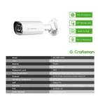 IR Night Vision Powerful night vision function supports monitoring in low-light conditions. POE Features Powered and transmits data through a single network cable for convenient installation. Conform IEEE802.3af Standard 48V POE. Transmission distance up to 80 meters (Depend on your quality of Network cable) Waterproof Design IP66 waterproof rating, suitable for both indoor and outdoor environments. Intelligent Analysis Built-in intelligent analysis functions, such as motion detection Smart H.265 Compression Smart H.265, The advanced video codec,save 70%~80% bandwidth compared with H.264. Especially Gcraftsman smart NVR working with smart IPC is able to display the best image quality in a lower bit rate. Remote Viewing, Anytime, Anywhere No matter where you are, you can remotely access the security camera to see live streaming and stay connected. Camera Specifications Package Includes Security Protection Design ·We can provide you professional security protection design and help you make every perfect detail. ·In case you have any question about the choosing of camera/NVR or the wiring, please feel free to contact us Firmware Update ·Our R&D department is constantly working on the better firmware to help you solve all the potential bugs and problems when you are using the products. They are also engaged in the new promising functions. ·We can provide you the latest update firmware lifetime. ·If you have any good idea, please feel free to let us know and once it was adopted, we will provide you a testing sample free of charge.