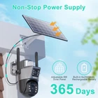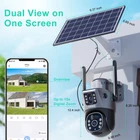 Dual Lens Dual Screen PTZ Outdoor Camera: outdoor camera features dual lenses, including a fixed lens and a rotating 355° horizontal lens with vertical 90° rotation, offering a comprehensive 360° view with minimal blind spots. The dual screen view allows users to switch between the bullet and dome screens with a single click, enabling rapid target identification and stabilization. Additionally, the camera is equipped with 10X digital zoom, allowing users to focus on specific details with precision 2K High-Definition Live Video: This WiFi outdoor security camera equipped with untra-clear lenses, that provides 8MP (4MP + 4MP, 2304*1296P) full HD images and video, offering clear visibility in both day and nighttime conditions. Its intelligent motion alarm feature is designed to provide real-time, accurate alerts in black-and-white mode, enhancing security and monitoring capabilities PIR Motion Detection & 2-Way Talk: This outdoor camera is equipped with a built-in microphone and speaker, enabling real-time, two-way audio communication. The mobile app allows you to deter potential intruders, monitor visitors at your door, and communicate directly with family or friends. The siren, flashing white light, and two-way talk feature collectively provide a deterrent against unwanted visitors and potential theft IP66 Waterproof Protection: This WiFi security camera can be mounted on a wall or ceiling. It is IP66 waterproof and ideal for use in extreme weather. It's perfect for open areas like car parks, garages, driveways, gardens, and front gardens Please note: The security camera only supports 2.4GHZ WiFi networks, not 5GHz. The battery-powered WiFi camera does not support 24/7 continuous recording. It is only capable of live view and motion detection recording. As we use advanced face recognition technology, we recommend avoiding crowded places when using the camera to conserve battery power. If the battery is dead, please use a 5V power adapter to charge the camera( input: 5 volt 1A, do not support 2.4A or 3A )