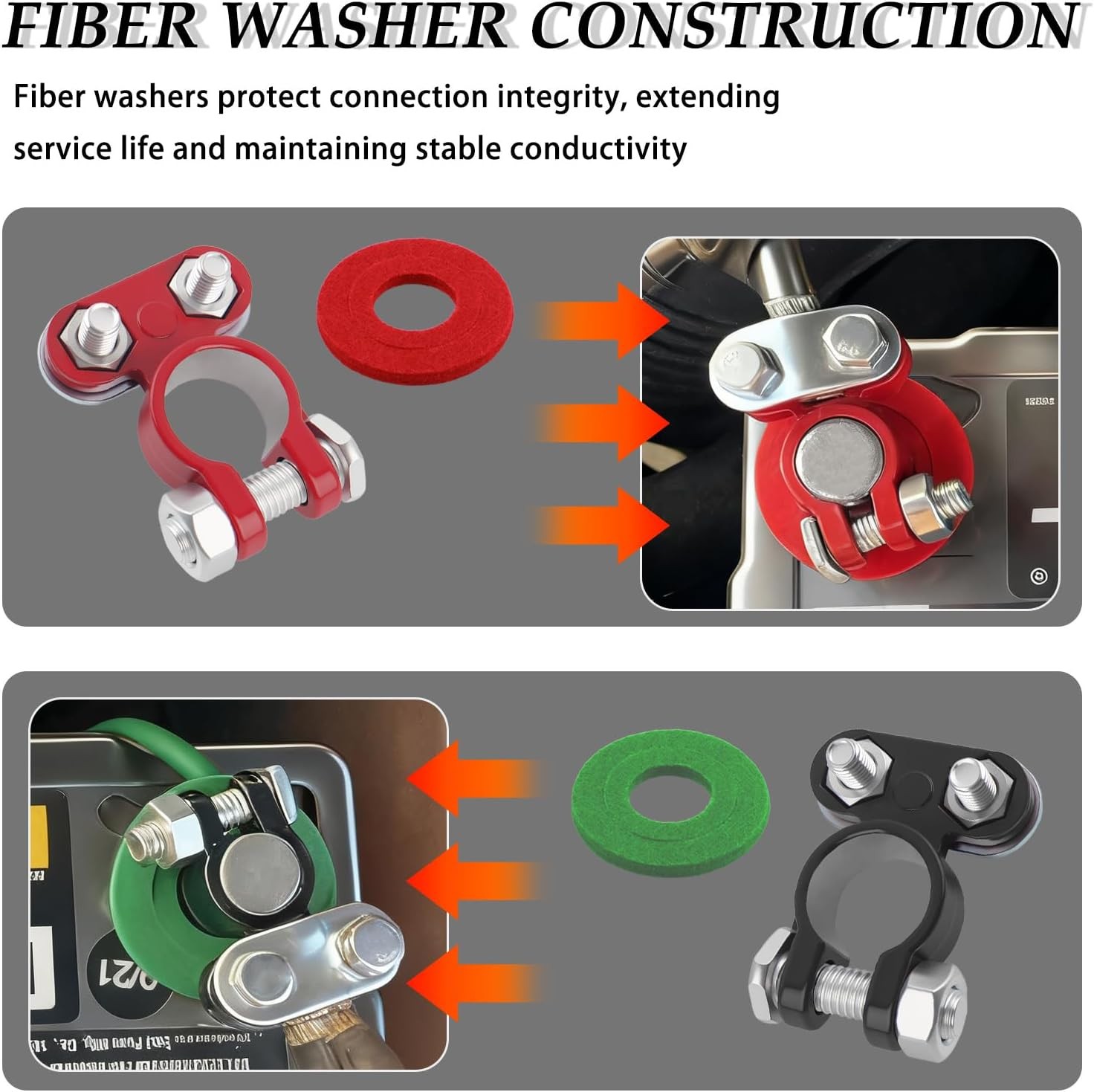 Free eBay listing template designed by dewiso.com 4PCS Positive & Negative Car Battery Terminals Connectors,Heavy-Duty Battery Post Terminals for Secure Connection,Universal Batteries Cable Ends Car Accessories for Cars,Trucks,Boats FREE AND FAST SHIPPING! SUPERIOR ELECTRICAL CONDUCTIVITY: This heavy duty battery terminal contribute to minimal voltage drop and consistent power transfer. The precision-cast design promotes a secure fit on battery posts, supporting reliable starting power for your vehicle's electrical system and helping to avoid power loss FIBER WASHER CONSTRUCTION: Featuring specialized fiber washers, these battery terminal ends help protect connection integrity. This design supports a longer service life for connection points and assists in maintaining conductivity for your car battery terminal connector ALUMINUM ALLOY MATERIAL: Made from advanced aluminum alloy, this auto battery terminal connectors offers a balance of light weight and strength. The surface finish also helps the unit hold up under hood conditions, supporting steady long-term operation INSTALLATION GUIDANCE: Before installing, check that these automotive battery terminals are clean and free of rust, you may lightly sand the surface if needed. Fasten the battery cable ends to the connector, then attach the connector to the terminal to complete the setup for your battery terminale WIDE COMPATIBILITY: With dimensions of 1.89×1.50×0.59 inch and an adjustable inner diameter, these battery connectors terminal can be adapted by tightening the bolt, this allows for use with various vehicles including cars, trucks, SUVs, and marine applications Product We offer a 30-Day Return Policy on items which you are not completely satisfied with. You have the option for a full-refund or an exchange of the item. No returns are available on items shipped outside of the US . Shipping We offer Free Shipping to the US and ship within 2 business days of payment, usually sooner. We use UPS express shipping. That's why your products are usually delivered within 3 days . Contact We try our very best to make sure every customer is completely satisfied. If there's a problem , message us! We're happy to help. 24/7 live chat available.