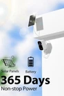 【Solar Security Camera with 5200mAh Built-in Battery】wireless security camera boasts a 3W solar panel, enhancing photovoltaic conversion efficiency by 30%, which can maintain 365 days of uninterrupted protection of your family, no need to remove it to charge. Additionally, the camera's robust 5200mAh built-in battery can power it for 1-3 months even in the absence of sunlight. With IP65 waterproof, it can work in any weather condition, making it perfect for outdoor use 【2K Live Video with 130° Wide View&Full-Color Night Vision】Check important features like faces or license plates in full color even at night, with color night vision to make this outdoor security camera the preferred camera for home security. It also has a 130° field of view, covering a wider area and allowing you to monitor your home environment better 【Advanced AI Motion Detection】Equipped with smart AI motion detection, this home security camera can clearly analyze and recognize people. The PIR sensor will be triggered in real-time once motion is detected, and a notification will be pushed to your phone via the app. The camera can also be shared with multiple users 【2-Way-Talk& Siren Alarm】For home security purposes, this outdoor camera is equipped with a siren alarm and spotlight, in addition to providing motion notifications. And you can customize your own siren alarm with messages like "Get away from my house now." The camera also includes a high-quality two-way audio function that allows you to communicate with your family or guests from anywhere and at any time 【No Subscription Fee】This wireless security camera supports both cloud and SD card storage, with the highest micro SD card storage capacity being 256GB. You can check historical records anytime and anywhere to ensure the safety of your home