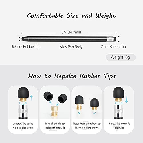 Return Policy Fast Delivery Trusted seller Stylus Pens for Touch Screens, High Precision Capacitive Stylus for iPad iPhone Tablets Samsung Galaxy All Universal Touch Screen Devices (4-Pack Black/Blue/Silver/Rose Pink) Product Description 2 In 1 Design: 2 different sizes rubber tips(0.21'' / 0.27'') in both sides of the pen, meet your different need; no more big finger troubles Anti-scratch Tips: stylus pen tip was made of soft, and scratch resistant rubber; fingerprint resistant and anti-stick screen tip, great for studying, drawing, playing etc Universal Capacitive: Compatible with all capacitive touch screen devices, including iPad, iPhone, Android tablets & smart phones, Samsung galaxy and so on Replaceable Rubber Tips: These stylus pens both two ends rubber tips are replaceable; replacing can be done within seconds without tool Package Including: 4* stylus; 4*0.21'' replacement rubber tips; 4*0.27'' replacement rubber tips. Shipping Returns Payment Shipping Shipping is FREE to all addresses other than APO/PO boxes in the lower 48 states. All our stock ships from US-based warehouses. Shipped via USPS or UPS (depending on location and package weight) Unless stated otherwise, all orders will ship within 24-72 hours of your payment being processed. Check our feedback to see the great reviews of FAST shipping we offer. Returns Seller does not accept returns Payment We currently accept payment via eBay managed payments only. Once payment is cleared, we will dispatch your shipment within 1-3 business days. Please refer to the "Shipping" tab for more information regarding shipping speed to your destination.