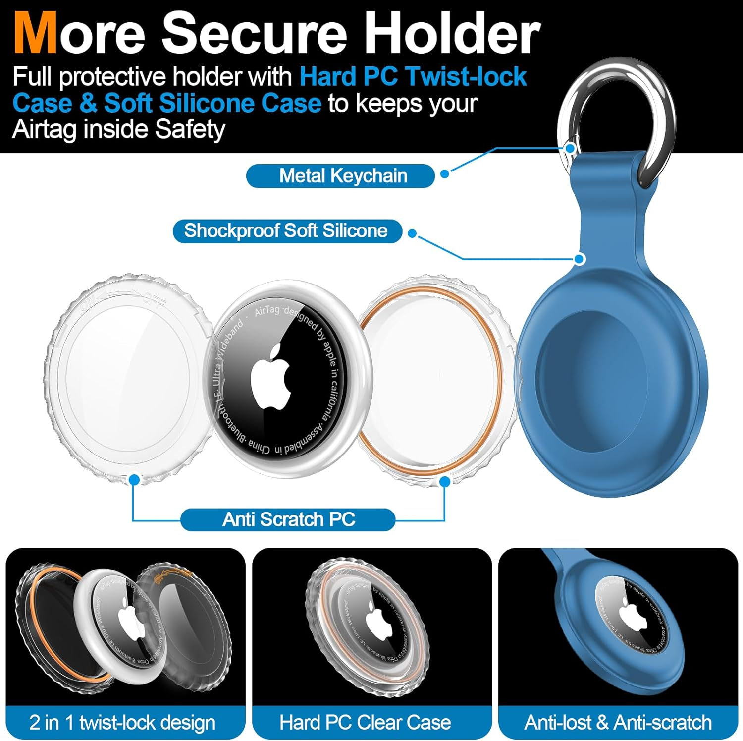 4-Pack Waterproof Airtag Holder Keychains, Shockproof Covers for Pets & Luggage [[IMAGE]] Hello, We Do Sell Mobiles, Computers Tablets & Network Accessories! Features 【IPX8 Waterproof & Perfect Fit】This High Cost Performance Airtag holder is IPX8 Waterproof rating and specially designed case for Apple New AirTag. (Note: Airtag is not included. ) 【2-in-1 Design & Hard PC+Soft Silicone 】This holder with keychain for Apple Airtag is made of detachable Hard PC+ Soft Silicone material,which could provide a stronger buffer when bumps or drops to fully protect your Air Tags.it is very lightweight, odorless and skin-friendly, and it can give you comfortable wearing experience. 【Keychain Design】This case for Air tag offers a sturdy metal Keychain that it closure ensures security,you can attach it to your car key, backpack,baby carriage ,pet leash, valuables, and more. Easily swap and change where you attach your Airtag on the things you want to keep track of. 【Durable & Easy to Use】Our Keychain case for Apple Air tags is best soft silicone material, sweat-proof, scratch-resistant and durable in use; which has superelasticity and will not be deformed no matter how you pull it. 【Better After Service & Safer】This AirTag Silicone hold with PC cover will not interfere with your Air Tag function, it will not affect the signal of AirTags tracker.With our faster and better after service,Let you choose these Air tag holders with more confidence. Product Description Item model number AirTag Keychain Holder Silicone Cases Whats in the box 4*airtag holders Color A0-Black+Blue+Green+Red Country of Origin China Compatible Devices Apple Airtags Item Weight 1.44 ounces Shell Type Soft Special features Slim Fit Form Factor Case Package Dimensions 5.43 x 3.54 x 0.55 inches Size 4 Pack 3.54 inches x 5.43 inches x 0.55 inches. Weight: 1.44 oz Payment We accept all payments via Ebay using Credit Cards , PAYPAL , Apple Pay and many others Shipping We are always working hard to ensure your package arrives as soon as possible. Please understand that some factors like weather, high postal traffic, and the performance of shipping companies are outside of our control. Delivery & Return Policy We offer a 30-Day Return Policy on items in which you are not completely satisfied with. You have the option of a full-refund or an exchange of the item. No returns are available on items shipped outside of the USA.