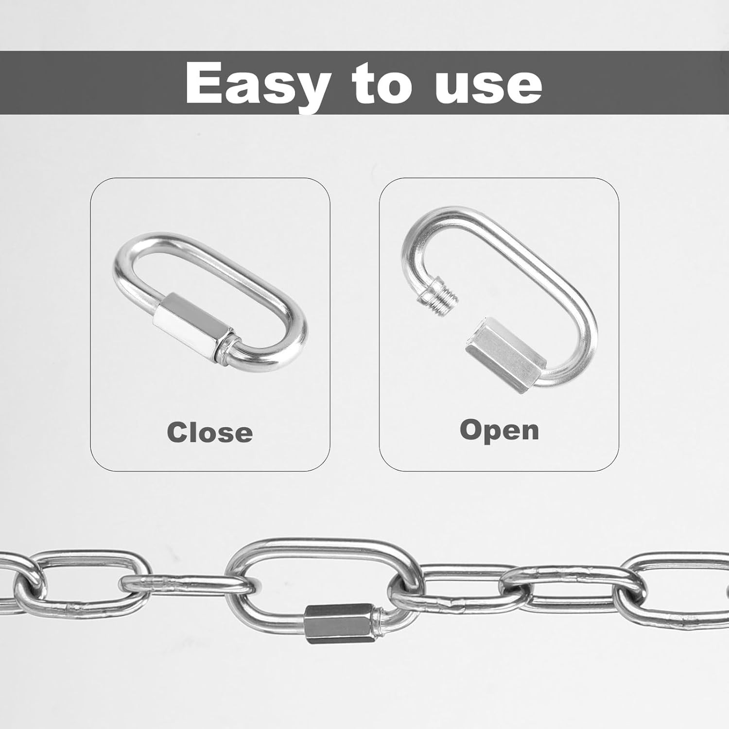 Free eBay listing template designed by dewiso.com 4pcs Locking Carabiner, Stainless Steel Chain Quick Links D Shape Threaded Link Connector Heavy Duty Screw Chain Coupler Ring Keychain Buckle Provides Secure Connection FREE AND FAST SHIPPING! About this item Package Content: You will get 4 pieces of locking carabiners. Sufficient quantity will meet your daily use and replacement. Product Material: Chain quick links are made of great quality 316 stainless steel, which is heavy duty, sturdy, reliable, long-lasting, easy to use and not easy to break. They can withstand harsh environment. Easy to Use: Just rotate thread to open and close this link connector. You can install and dismantle it within several seconds. it's very great for extending fence slats, chain links and trailer chains. Versatility: Screw chain link is used for bearing heavy load and providing connections on ropes, boat ropes, anchors, hammocks, swings, gyms, etc. It's widely used in ships, accessories and water treatment fields. It's also suitable for backpacks, handbags, key chains, pets, rope links. Product Size: Chain coupler's thickness is about 0.6cm/0.24 inch, and length is about length: 5.7cm/2.24 inch. Working load is 500kg/1102 lbs, and breaking load is 1300kg/2866 lbs. Note: The maximum load-bearing capacity of each link connector is different, please do not overload. Show more Product We offer a 30-Day Return Policy on items which you are not completely satisfied with. You have the option for a full-refund or an exchange of the item. No returns are available on items shipped outside of the US . Shipping We offer Free Shipping to the US and ship within 2 business days of payment, usually sooner. We use UPS express shipping. That's why your products are usually delivered within 3 days . Contact We try our very best to make sure every customer is completely satisfied. If there's a problem , message us! We're happy to help. 24/7 live chat available.