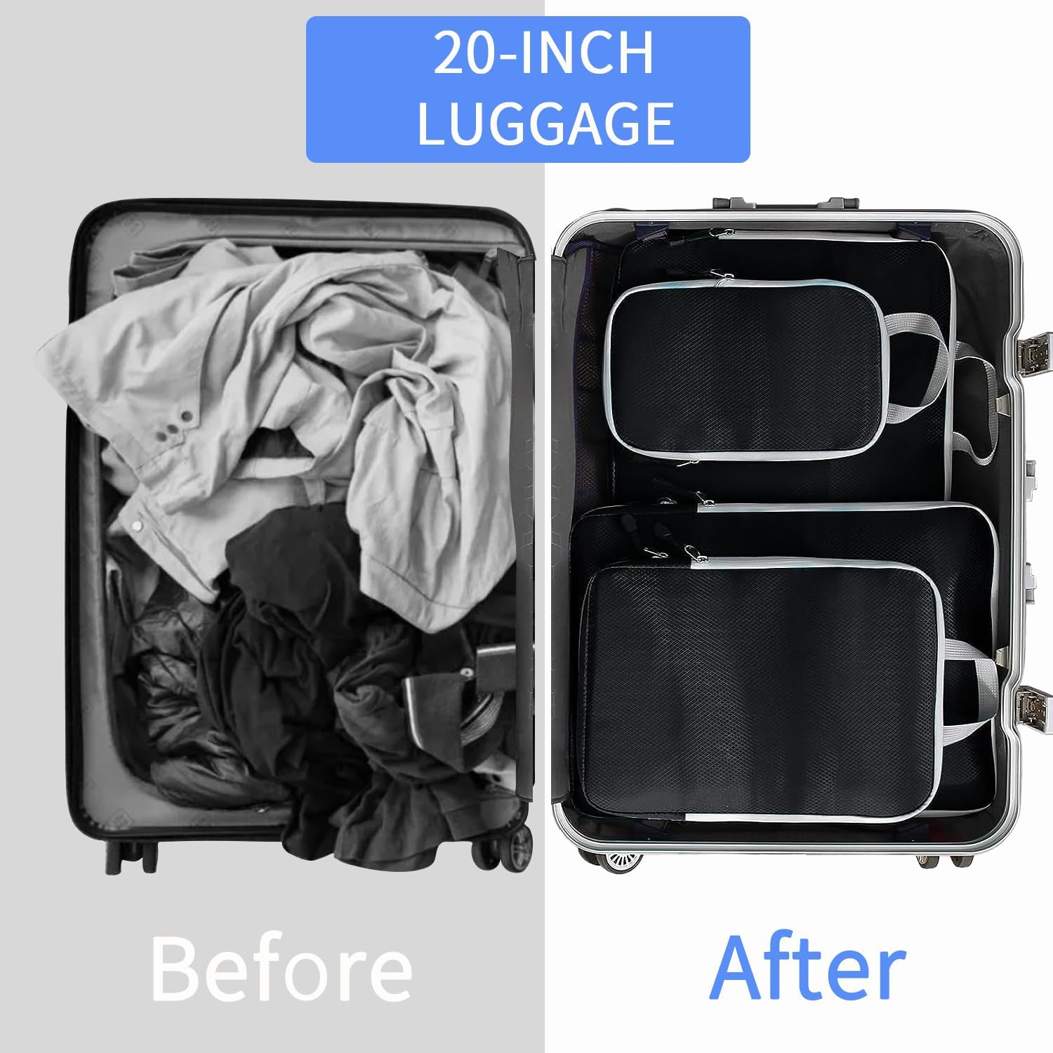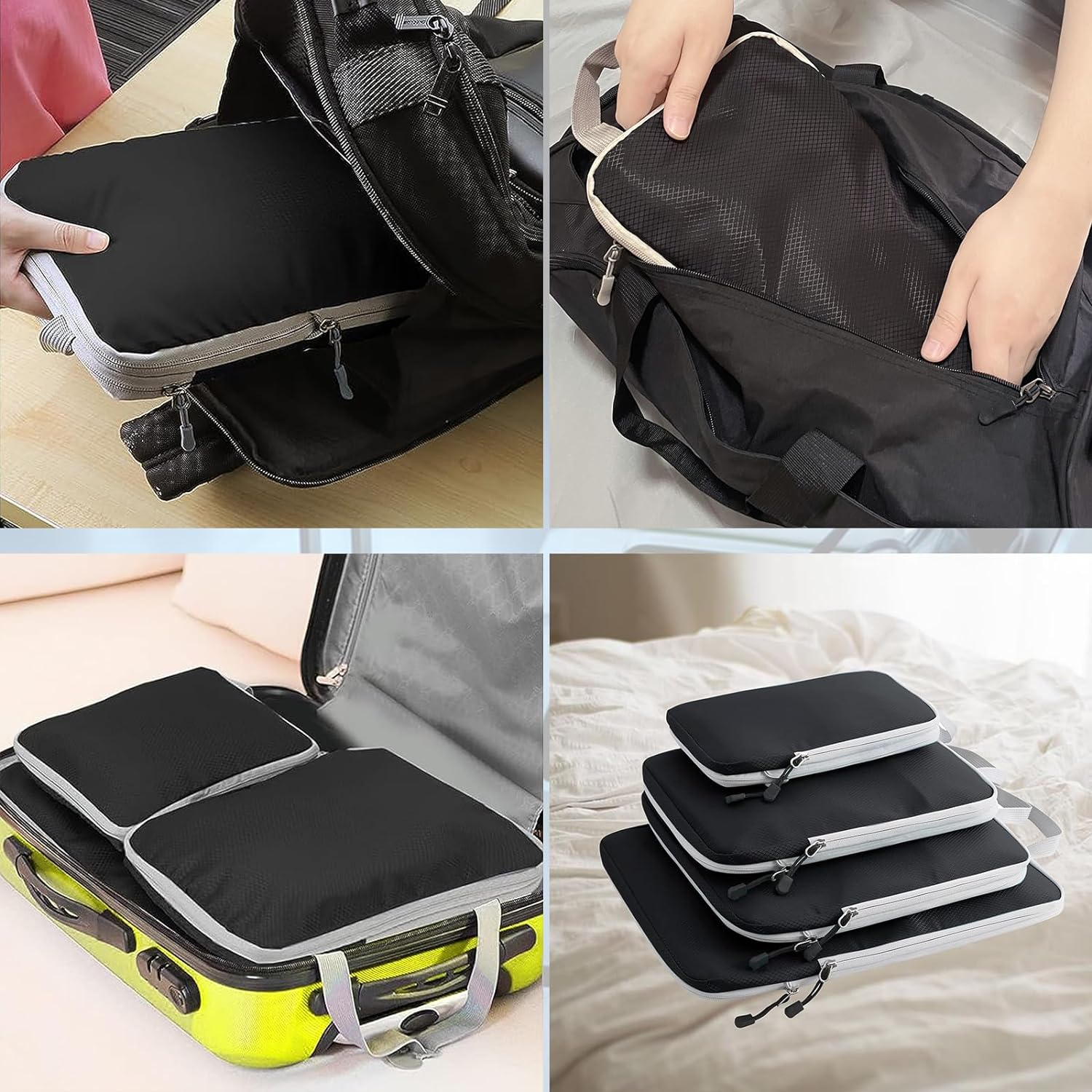 These compression packing cubes are a game-changer for travelers! The double-zipper design easily flattens clothes to save tons of space – perfect for stuffing more into your suitcase without the bulk. They keep everything organized, so no more digging through messy luggage. Sturdy fabric holds up well, and the set comes in different sizes for versatile packing. Makes packing and unpacking a breeze – a must-have for any trip!