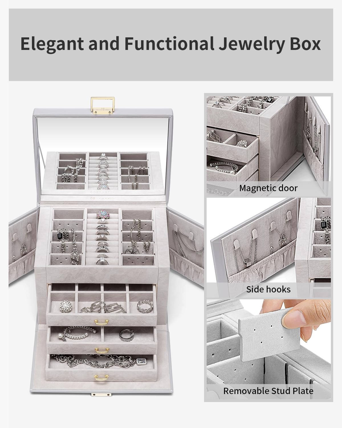 Store New Arrivals Add to Favorite View Feedback Contact Jewelry Box 4-Tier,Jewelry Boxes & Organizers with Handle,3 Drawers Travel Jewelry Case with Mirror,Jewelry Storage,Earrings Necklace Rings Christmas Gift for Women Girl Grey Description Style Vintage Number of Items 1 Jewelry Storage Type Jewelry Box Number of Compartments 3 Batteries required No Special Feature Durable,Eco-friendly,Large Capacity Product Dimensions 8.66"D x 6.88"W x 6.4"H Material Faux Leather Number of Drawers 2 Finish Type Textured Closure Type Button Item Weight 3.8 pounds Occasion New Year, Wedding, Christmas, Thanksgiving, Memorial Day Target Audience Women, Girls Mounting Type Freestanding Color A.Grey Shape Rectangular Recommended Uses For Product Earring Finish types Textured Inner Material Leather [Magnetic Suction] Jewelry box organizer with humanized design,that is,the design of double magnetic suction,the side partition is also used in the way of magnetic suction. So you will not worry about some jewelry will fall to the ground when wearing, and your jewelry will not be damaged [Large Capacity] 4-Layers of storage,removable openings for stud earrings, ring slots, side hooks for hanging necklaces, velvet pockets and 3 drawers with separate compartments. Women's jewelry box welcome various jewelry, could store all kinds and all size jewelry,bracelets [Premium Material] The exterior of the jewelry box is made of eco-friendly scratch-resistant, odorless, finely textured and durable PU leather.The side hooks for hanging necklaces are made of metal,durable and not easy to deform. The velvet pocket storing necklaces is made of thickened material, which is superior to most jewelry boxes on the market [Gift Selection] Each jewelry box is gift box packaging, suitable for birthday,wedding,Valentine's Day,Christmas,anniversaries as a gift to friends,mom,girl friends.Absolutely, satisfy yourself with this elegrant, fashionable jewelry organizer—you deserve it [Portable Jewelry Box] Jewelry box with handle,cubo-shaped,easy to carry outdoors. The lid of this jewelry case have a large, clear mirror that is convenient for you to check whether the makeup is perfect before you go out Product Description Gift for Jewelry Storage Box Colors Multiple color options to meet your different scenes use Multi-functional large capacity storage jewelry box Home Storage - Say goodbye to messy desktop and knots in your jewelry. Size&Weight Explore Your Favorite Jewelry Box Add to Cart Add to Cart Add to Cart Add to Cart Add to Cart Add to Cart Customer Reviews 4.8 out of 5 stars 665 4.8 out of 5 stars 665 4.8 out of 5 stars 665 4.7 out of 5 stars 246 4.7 out of 5 stars 246 4.7 out of 5 stars 246 4.6 out of 5 stars 99 Price $37.99 $ 37 . 99 — $24.99 $ 24 . 99 $49.99 $ 49 . 99 $69.99 $ 69 . 99 $69.99 $ 69 . 99 $26.99 $ 26 . 99 Dimensions 8.9 x 6.9 x 6.6 inches 9.96 x 7.2 x 6 inches 11.6x 8.1 x 6.6 inches 9.44 x 5.4 x 1.18 inches 9.9 x 11.4 x 6.9 inches 9.9 x 11.4 x 6.9 inches 10 x 6.5 x 3.2 inches Number of Drawers 3 2 2 5 5 5 ✘ Special Features Portable,Removable,PU Leather PU Leather PU Leather Large Capacity,PU Leather Large Capacity,PU Leather Large Capacity,PU Leather PU Leather,Portable Lockable ✔ ✔ ✔ ✔ ✔ ✔ ✔ Suitable Wedding,Gifts,Anniversasry Gifts,Women,Girls,Wedding Gifts,Women,Girls,Wedding Gifts,Women,Girls,Wedding Gifts,Women,Girls,Wedding Gifts,Women,Girls,Wedding Travel,Gifts,Women,Girls ABOUT US We offer the best prices around on high quality products. Our E-store includes media such as books, movies, music and games while offering electronics, toys, sporting apparel, clothing, tools, general home, garden items and more. SHIPPING We are always working hard to ensure your package arrives as soon as possible. Please understand that some factors like weather, high postal traffic, and the performance of shipping companies are outside of our control. We offer free shipping to the lower 48 states and ship within 2 business days of payment, usually sooner. We do not accept P.O. Boxes. Please provide a physical address. For shipping outside of the continental USA, we only use eBay's Global Shipping Program.The item is shipped to KY and then sent to the rest of the world. International customers are responsible for all duties and taxes. Continue to check out in order to calculate costs for shipping the item to your country. Messages regarding eBay's Global Shipping Program MUST be directed at eBay EXCLUSIVELY. RETURNS We offer a 30-Day Return Policy on items which you are not completely satisfied with. You have the option for a full-refund or an exchange of the item. No returns are available on items shipped outside of the USA. PAYMENT We accept PayPal. CONTACT US This page content is yet to come Please ad us to your favorite seller and visit again later Thank You CUSTOMER SATISFACTION We try our very best to make sure every customer is completely satisfied. If there's a problem, message us! We're happy to help. WE ACCEPT Copyright © 2021 AutoDS. | All Rights Reserved