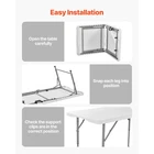 Folding Table This folding table is suitable for indoor or outdoor use, meeting your diverse needs. Large Space High Stability 3 Adjustable Heights Portable Durable Tabletop Anti-slip Easy to Clean Camping Picnic Parties Beach Q: What are the dimensions of the tabletop? A: The tabletop measures 4 feet (48 inches / 122 cm), providing ample space for meals, gear, or activities. Q: How much weight can the table support? Is it stable? A: The table supports up to 220 lbs (100 kg) and features a robust frame with legs that resist wobbling. Q: How much does the table weigh? Is it easy to move? A: The table is lightweight at 17.6 lbs/ 8 kg and folds compactly, making it effortless to carry with the built-in handle and store in car trunks or closets. Q: Is assembly required? How complicated is it? A: No tools are needed – simply follow the included installation manual for assembly. Setup is quick and intuitive for anyone. Features & Details Spacious Multi-Person Design: The camping table has a 4ft wide tabletop seating 4-6 adults, ideal for camping, tailgates, or bbq. Three adjustable heights (19/24/29 in) suit dining, work, or buffets—quick-lock mechanism ensures easy adjustments High-Strength HDPE Construction: Crafted from 3.5cm-thick high-density polyethylene (HDPE), this portable table support up to 220 lbs. The reinforced structure is designed to handle heavy gear and frequent use while reducing the risk of warping Easy Storage & Carry: The compact work table is lightweight, and folds to 24x23.6x2.8 in. Built-in handle and buckle enable one-handed carrying. Slim profile fits car trunks, RVs, or garages—no assembly, sets up in seconds Rugged Surface & Stable Base: The waterproof, scratch-proof HDPE surface helps resist spills and abrasions. The locking legs with non-slip rubber caps help ensure stability on floor—minimizing wobbling during use Wide Application: This utility table is ideal for outdoor picnic table, BBQ prep station, or family game night desk. Suitable for camping trips, beach outings, backyard parties, and more SHIPPING ABOUT US PAYMENT RETURNS CONTACT WARRANTY Welcome to our eBay store. As a leading and emerging company in manufacturer and exporting business, we are specialized in Business and Industrial Products, Sporting Goods, Pet Products, Home and Garden products for more than 10 years. We believe that it is our vision and mission to provide innovative products with best service and competitive price to satisfy you. Our goal is to make sure that you can find exactly what you are looking for and make it easy for you to place your orders. We accept PayPal payment,PayPal Credit,Credit card or debit card and so on. Payment should be completed within 4 (Four) days of auction closing. Or unpaid dispute will be filed for closing auction. We will leave a positive feedback immediately after payment is received. We appreciate a positive feedback as much as you do. If for some reason there is any issue with the purchase, please contact us prior to leaving feedback, we will be glad to work together and provide a satisfying solution. Please be aware that PO Box cannot receive items, please DO NOT fill in the PO Box address. DELIVERY DAYS: 3-7 BUSINESS DAYS 3 BUSINESS DAYS SHIPPING OUT SHIP FROM CA & TX & NJ & GA & NC &OR WAREHOUSE California Warehouse: City of Industry, CA Texas Warehouse : Houston, TX New Jersey Warehouse : Perth Amboy, NJ New York State Warehouse: Perth Amboy, NJ Georgia Warehouse: Austell,GA North Carolina Warehouse: Grove NC Oregon Warehouse: AIRPORT WAY Portland,OR All of our items are backed with a 30-day return policy. We ensure all our items are new and in excellent condition prior to shipping. In case you receive the item that is not to the standards above, please contact us via e-Bay messages. All returns must be in new original condition as received and should be shipped with delivery confirmation Please note that all returns must be pre-approved by us. Unauthorized returns will not be accepted. If you need to return, please check twice to confirm the item not work and contact our customer service representative, let us know the detailed problem and send us some pictures for confirmation. We ONLY accept returns with original package. Please make sure that item has NO man-made sabotage. Used items will not be accepted for return. Email Customer Support: 9:00am-2:00am PST Sunday-Friday All emails will be responded to within 12-24 hours This item comes with 12 months Warranty from the date of customers purchased it. Special circumstances will be listed clearly in the listing. If your item has been damaged in transit or become faulty in warranty period, please email us with pictures or video to show the problem. Please do check everything carefully after you received the parcel, any the damage except DOA (Dead-On-Arrival) would not be covered if it's your fault. Replacement products are provided with the same warranty as the returned products. Folding Table This folding table is suitable for indoor or outdoor use, meeting your diverse needs. Large Space High Stability 3 Adjustable Heights Portable Durable Tabletop Anti-slip Easy to Clean Camping Picnic Parties Beach Q: What are the dimensions of the tabletop? A: The tabletop measures 4 feet (48 inches / 122 cm), providing ample space for meals, gear, or activities. Q: How much weight can the table support? Is it stable? A: The table supports up to 220 lbs (100 kg) and features a robust frame with legs that resist wobbling. Q: How much does the table weigh? Is it easy to move? A: The table is lightweight at 17.6 lbs/ 8 kg and folds compactly, making it effortless to carry with the built-in handle and store in car trunks or closets. Q: Is assembly required? How complicated is it? A: No tools are needed – simply follow the included installation manual for assembly. Setup is quick and intuitive for anyone. Features & Details Spacious Multi-Person Design: The camping table has a 4ft wide tabletop seating