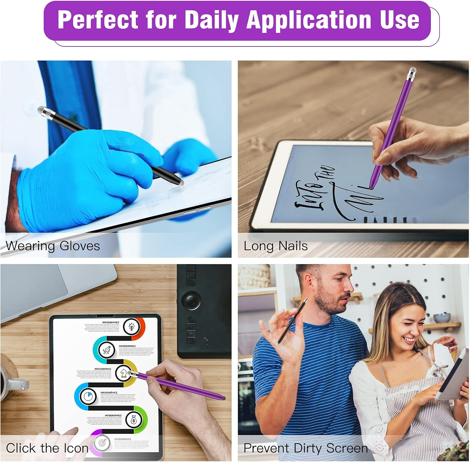 Stylus Pens for Touch Screens, 4 in 1 Sensitivity Capacitive Stylus Touch Screen Pen with 8 Extra Replaceable Tips for Iphone Ipad Tablets All Universal Devices(2Pcs) (Black+Purple) 【4 In 1 Design Sensitive Stylus】- The two stylus pens come with 4 spare different touch tips,2 sizes fiber & rubber tips can be placed on each end,perfect for phones and tablets on daily use.One end smaller tip provides smooth drawing and senstivity handwriting experience on touch screens, the other end larger tip more accuracy than finger for click and browse on your phones and tablets. 【Anti-scratch Tip Stylus Pens 】- Granarbol touchscreen pen stylus have the particular durable fiber tip and soft rubber tip, which is suitable for all capacitive touch screens and it can protect your screen from scratch,keep your screen no fingerprints,no lags,no skips, high responsive! 【Universal Capacitive Stylus】 -Compatible with Apple iPads,iPad Mini,iPad Air,iPhones,Kindle,Kindle Fire,Kindle Paperwhite Android Tablets,Android Phones,Samsung Galaxy,E- readers,Smartphones and all capacitive touch screens devices 【Replaceable Fiber & Rubber Tips】 - These stylus pens both two ends fiber tips are replaceable, also can be changed replacement rubber tips on each end. Replacing can be done within seconds without tool.4 extra replacement fiber tips and 4 rubber tips, effectively extend lifetime of the stylus pencil. 【Ideal Gift For Family and Friends】 - Get 2 of colorful stylus with an unbeatable price,a great alternative to Apple pencil or samsung pencil. This stylus pens would be the ideal Christmas/birthday/back to school/office gift for family or friends. Product Description Granarbol 4in1 stylus pens was made of aluminum with dual ends tips, you can exchange it with mesh fibber or rubber tips meets your multi-uses.More accurate than fingers,protect your ipad screen away from scratches/fingerprints,provide a smoothly writing/drawing experience with this ipad pencil! 1 4 IN 1 Stylus Pens 2 Ergonomic Design 3 Easy to Use 4 Anti-Scratch Fiber Tip 5 Replaceable Tips Why You Choose Granarbol Stylus Pens for Touch Screens? More flexible than finger, it can be smoothly used on any capacitive touch screens even when you wear gloves or your hands with long nails. Perfect for children, students,elders and everyone who need a stylus for daily use.Whatever large hands or tiny hands, they are perfect for all ! Capacitive 4 in 1 multi-tip stylus pens with high-quality and ultra-sensitive works well on all universal touch screen devices. Perfect for browsing,writing, drawing, taking notes, playing games and other forms of creative expression. Alloy pen body, perfect weight give you comfortable feeling hold like as real pencil,no need to charge, easy to use in anytime. Protect your screen from scratching and keep no fingerprints. Elegant and slim, perfect as a great gift for your family and friends. Granarbol touch stylus pen offer two different size &type tips ,provides much better flexibility and accuracy on drawing/handwriting,easily slides across the screen even with golves/long nails, perfect for studying and working, effectively protect your touch screen away from scratches/fingerprints. Granarbol touchscreen stylus pen compatible with all capacitive touch screens devices,such as Apple iPads,iPhones,iPad Mini,iPad Air,iPad Pro,Kindle,Kindle Fire,Kindle Paperwhite,Android Tablets,Android Phones,Samsung Galaxy,E- readers,Smartphones and so on. What should I do if this stylus not works on my ipad? This stylus pens for touch screens does not support palm rejection,please make sure your hands not lay on the screen when you using the stylus, and both the device and the fiber/rubber tip is clean. How to get extra rubber tips? The package comes with free replacement of 4rubber tips+4 fiber mesh tips,it can be replaced within seconds, more instructions please see the user manual as reference.If you need more extra tips, please search the ASIN:B0B4N86BR4 on amazon. How to check if this pencil works on my tablet? This stylus pens compatible with all capacitive touch screen devices.Please free to let us know via amazon a message/email if there is any problems about this pencil. What should I do if there is a problem while using this stylus pen? Please free to let us know via amazon a message/email if you have any questions about this tablet pencil. Batteries Required? No Material Rubber Are Batteries Included No Color Black+Purple Item Diameter 0.28 Inches Country of Origin China Compatible Devices Smartphone Item Weight 18 Grams Package Dimensions 6.73 x 4.61 x 0.39 inches 4.61 inches x 6.73 inches x 0.39 inches. Weight: 18.0 grams Shipping from the USA All of our products are shipped from the USA, ensuring quick delivery to your destination. Payment We offer the following payment methods: PayPal, credit card, bank transfer, and eBay's secure payment system. Free Shipping & Free Returns Shipping within the USA is FREE. Additionally, any return is absolutely free for you. Risk-Free Purchase You have the option to return an item within 30 days without any justification. We cover the return shipping costs! Fast Shipping We ship immediately upon receipt of payment. Generally, the package is delivered within 2-3 days in the USA. If it takes longer, we will contact you. Quality and Costs Made in Europe, USA, China No customs fees or additional charges Total satisfaction guarantee Invoice with declared VAT available upon request in .pdf format Feedback Your feedback is very important to us. After you pay for your purchase, you will automatically receive positive feedback from us.