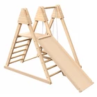 Specification Product Information Item Code: W2644P233324 Product Type: General Item Product Name: 4-in-1 Juniper Indoor Play Gym - Jungle Gym Playset with Baby Swing, Slide, Ladder, and Climbing Wall - Foldable Wooden Playset - Indoor Jungle Gym for Kids Main Color: Natural Wood Main Material: Pine Product Dimensions Assembled Length (in.): 29.68 Assembled Width (in.): 44.48 Assembled Height (in.): 43.30 Weight (lbs.): 40.50 Package Size Length (in.): 48.00 Width (in.): 18.80 Height (in.): 5.90 Weight (lbs.): 44.90 Product Features 4-in-1 Indoor Climbing Gym: The Juniper indoor playset is a 4-in-1 wonderland designed to captivate and engage your child's imagination. It effortlessly transforms your living space into a playground. Interactive Features: This indoor wooden play gym features a detachable slide, rock wall, interchangeable baby swing, and regular toddler swing that comes with a baby belt swing and fastener for an easy swapping and installing. Exceptional Craftsmanship: Made from premium New Zealand Pine, celebrated for its excellence in furniture and toys, our play gym ensures safety with smooth, rounded bars and gives a delightful sliding experience with its gentle slope. Compact and Convenient: this indoor wooden playground can be conveniently transported or stored away, making sure that your living spaces can serve multiple purposes. Say goodbye to clutter! Built to Last: This child jungle gym is designed to handle all the pushing, pulling, yanking, twisting, and jumping your kids can dish out. It accommodates up to 60 lbs per child and a total of 220 lbs. Safety First: Our jungle gym for kids undergoes rigorous testing, meeting the stringent standards of the ASTM and CPSIA. Finished with a non-toxic, BPA-free varnish ensuring a healthy environment for your child. Developmental Benefits: Beyond the fun, our wooden jungle gym contributes to your child's development. It enhances motor skills, social skills, and coordination, offering a holistic approach to playtime that goes beyond entertainment.