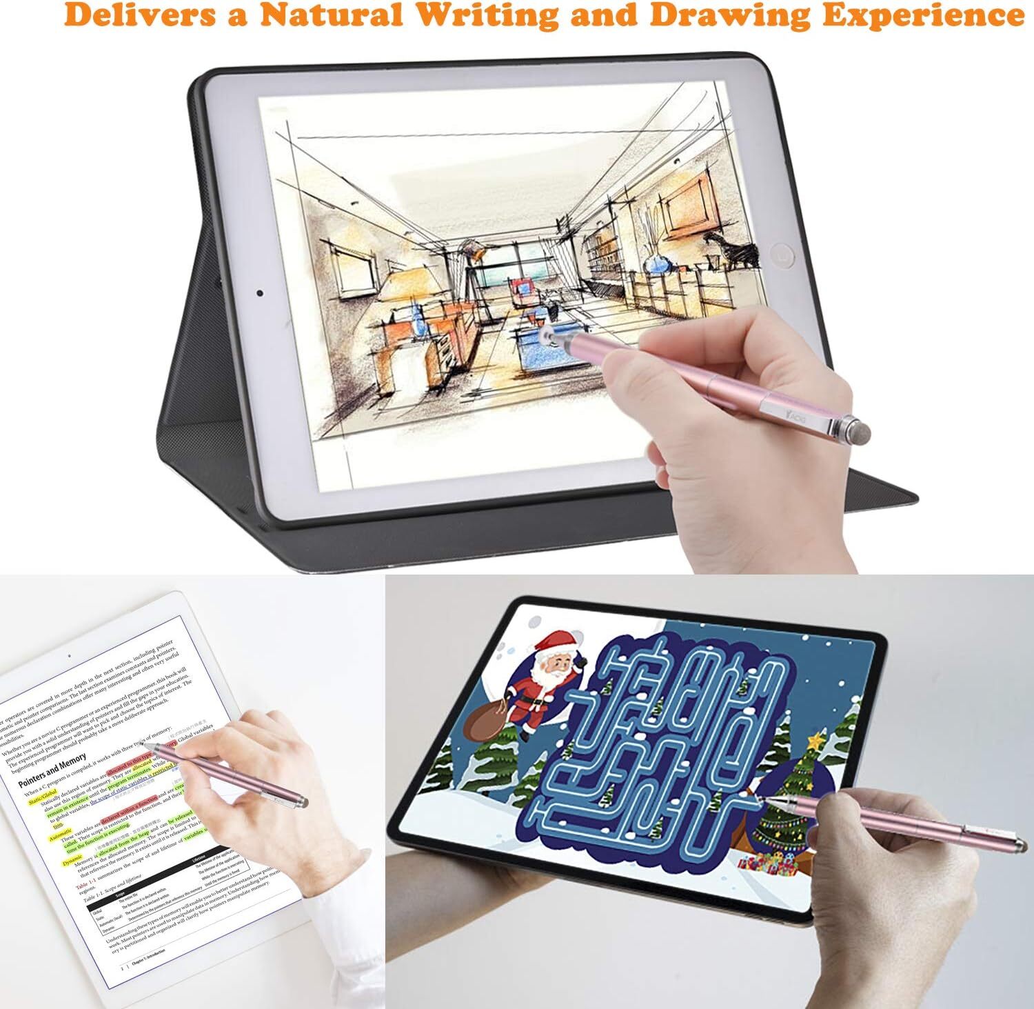 Stylists Pens for Touch Screens iPad iPhone Android, 4-in-1 High Rose Gold Product Details Package Dimensions: 7.87 x 4.37 x 0.51 inches Item Weight: 1.41 ounces Manufacturer: Yacig Color: Rose Gold Brand: Yacig Material: Rubber Compatible Devices: Smartphone Are Batteries Included: No Batteries Required?: No ✔ 【4 in-1 Tip Practical Design】--Including 4 different touch tips. 1 X 0.27" Precision Disc Tip; 1 X 0.27" Replaceable Fiber Tip; Two different sizes Rubber tip diameter: 0.2" (5mm) / 0.27" (6.8mm); You may choose the different tips for different purpose. In addition, this touch screen pen also can be use as a regular ball point pen. Easily interchangeable tips and even a pen tip make this a wonderful addition to your writing implements. ✔ 【Precision stylus】--The clear disc allows you to see exactly where your mark is being made and gives you the accurate point. Perfect for taking notes and drawing apps. The small rubber tip allows you select small icons, click small hyperlinks and gives you the accurate selection. It’s necessary to keep your screen clean prevent any scratches. All parts are easily screwed on to the other so you don’ t have anything lying around to lose. ✔【Compatibility】--The Touch Screen Pen is universal, it’s compatible with all capacities touch screen devices (Apple iPad, iPhone, iPod, Kindle, Kindle Fire, Kindle Paperwhite Android Tablets, Android Phones, Galaxy, E- readers, Smartphones and other Capacitive Touch Screens devices). Made of high grade copper material, real pen feeling. Smooth use on touch screen devices, responsive as finger touch. ✔【Classy & Humanized Design】--Sleek, lightweight, and no battery required.The stylus fits comfortably in your hand and has a built-in clip so it attaches securely to your pocket or tablet case. A great gift idea, which blends functionality and elegance. Designed for touch screen devices. Discover this exceptional accessories you can use to draw and doodle to bring out the best of your artistic creativity.【Package Included】* 1 stylus * a set of extra tips * 1 leather case.