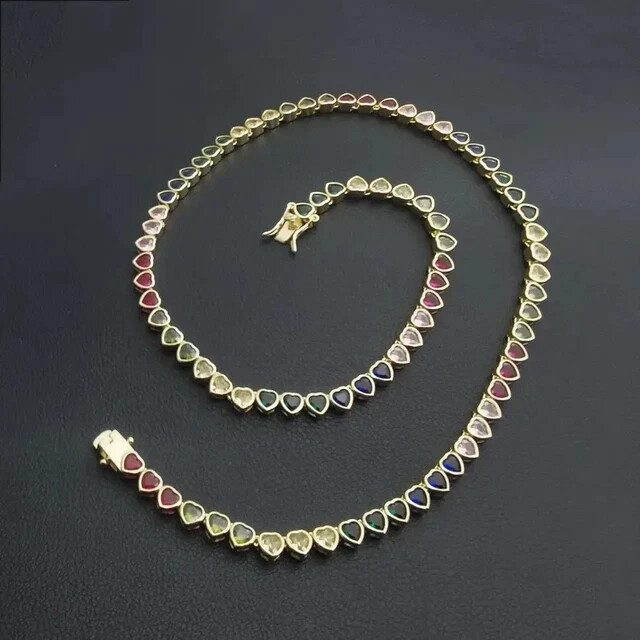 $ 173.0720Ct Heart-Cut Diamond Tennis Choker Necklace in Yellow Gold Plated 16 Inch