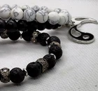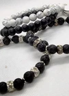 This beautiful bracelet set is a must-have for any jewelry collection. The set includes two lava stones, white howlite, and black stones, which are expertly crafted into a unique and stylish piece. The brand, Blackstone, is known for their high-quality jewelry and this bracelet is no exception. The bracelet is perfect for any occasion and would make a great addition to any outfit. The white howlite and black stones complement each other perfectly, creating a stunning and timeless piece. This bracelet is a great gift for a loved one or a treat for yourself.
