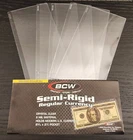 5 BCW SR-RB Semi-Rigid Regular Bill Currency Holders for US Small Size Notes Available for Buy It Now is one lot of 5 new / unused BCW SR-RB Semi-Rigid Regular Bill Currency Holders for US small size notes. These are the only currency sleeves I use for currency shipments and have had ZERO issues with thousands of delivers. These holders are top-loading and firm enough to protect your note while being flexible enough to give when needed, like when going through USPS mail sorting machinery. Please note that no currency is included and is shown for display purposes only. Description from the manufacturer: The best graded bill submission sleeve in the market. These deluxe holders are a real time saver and offer sturdy protection. They work great when mailing in your notes for grading. The BCW Semi-Rigid currency holder is made from high clarity Double polished clear vinyl and is designed to store regular US Currency (6⅛ x 2⅝). SKU: 1-SR-RB Brand: BC W Holds regular US Currency (6⅛ x 2⅝) Made of semi-rigid Vinyl Strong Welds Interior Dimensions: 6 5/16 x 2 11/16 Exterior Dimensions: 6 7/16 x 3 1/16 Please pay within 3 days of auction end unless other arrangements have been made. Items will be shipped within one business day of receipt of cleared funds. USPS shipping to verified US addresses only. International shipping is offered through eBay International Shipping and is subject to their terms, fees, and conditions. Tax, if required by your jurisdiction, is not included and will be calculated and collected by eBay. Thanks for viewing and please feel free to contact me if you have any questions!