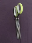 This multi-blade herb scissors is a must-have tool in your kitchen. With its sharp stainless steel blades, you can easily chop herbs and other ingredients. The straight blade edge makes it easy to shred and the soft grip handle ensures that you have a comfortable grip while using it. This green multi-blade herb scissors comes with a blade cover to protect the blades when not in use. It is also dishwasher safe for easy cleaning. The herb stripper feature makes it easy to strip herbs from their stems. This 0.25 lb tool is a great addition to any kitchen. Used once I’m not much of a cook