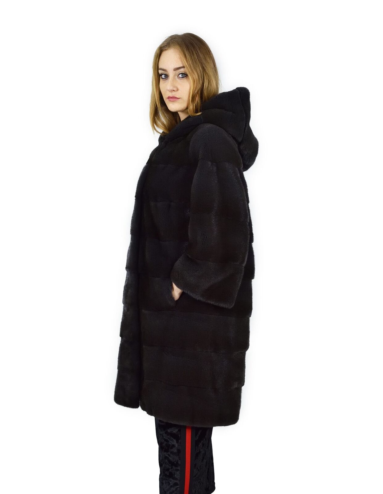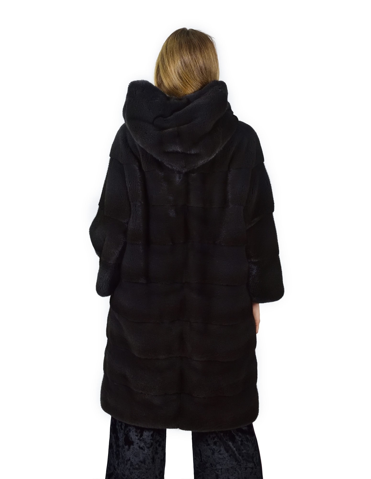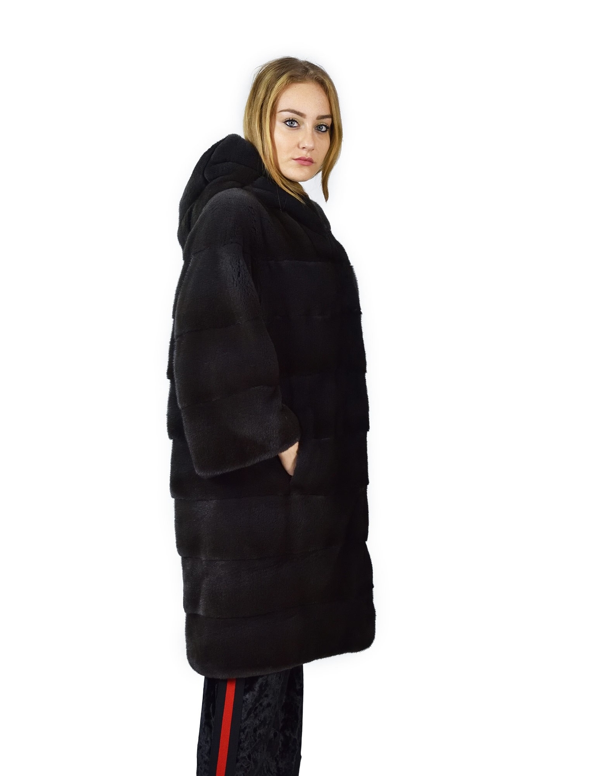 42 Blue Irish Horizontal Mink Coat with 68cm Hood Luxury Fur Visone Pelliccia
