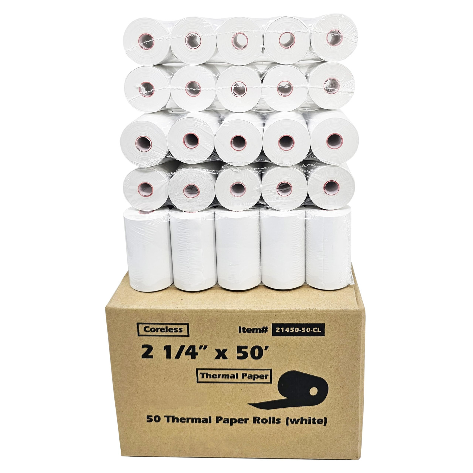 (50 Coreless Rolls) 2 1/4 x 50 Thermal Paper Receipt Rolls fits all Credit Card Terminals Verifone VX520 Ingenico ICT220 ICT250 BPA Free from