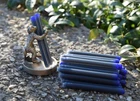 The auction is for 50 high quality, WATERMAN compatible, snap-in ink cartridges in ROYAL BLUE (They are app. 2 7/8 inches long and app. .25 inches in diameter They are brand new, full of ink, still hot off the press Please see picture no 2. (Their shelf life is up to three years) (please read the article below if you'd like to make them last a lot longer) Almost forever. -------------- The ink is both acid free and archival safe It dries quickly and doesn't smear when gotten wet It is non toxic and pH neutral Lightfast and waterbased It won't damage your pen under any circumstances FREE SHIPPING Please allow 12-14 days. I'd really appreciate it if you could wait that long. Tracking number uploaded in 1-2 days. Satisfaction guaranteed Not happy? Please return them for a full refund. NO QUESTIONS ASKED ___________ Below is some interesting information about ink cartridges in general (their longevity) Inks are water solutions and cartridges are made of what seems to be polyethylene. Over a period of years, water molecules will migrate through the walls of the cartridge--it has nothing to do with whether the cartridge is sealed properly or not--it will happen anyway. This situation is roughly analogous to a balloon filled with air. After several days, air leaks through the rubber, no matter how well it is sealed. The bottom line is that cartridges have a shelf-life on the order of years. They should be fine for about 3 years or so at room temperature. They can last much longer at lower temperatures, but don't allow them to freeze--the water will expand and possibly break the cartridge. In theory, a way to make cartridges last *almost* indefinitely, would be to store them in a jar filled with water. This would *essentially* keep the water inside the cartridge in equilibrium with the water outside--i.e. about as much water would leak in as would leak out. The reason that I said *almost* is that there is a very weak force of osmosis at work. This is because there is a difference in the concentration of molecules dissolved inside the cartridge (i.e. the ink and small amounts of other additives) and outside, where there is nothing dissolved). This force will very slowly pull water into the cartridge as the exact concentrations attempt to reach equilibrium (this is the principal of dialysis). However, we are now talking about a process that would take perhaps decades. Also in theory, if the water in the bottle had the exact concentration of large molecules as inside the cartridge, the cartridge would last more than a lifetime. Chemistry in (very slow) action.