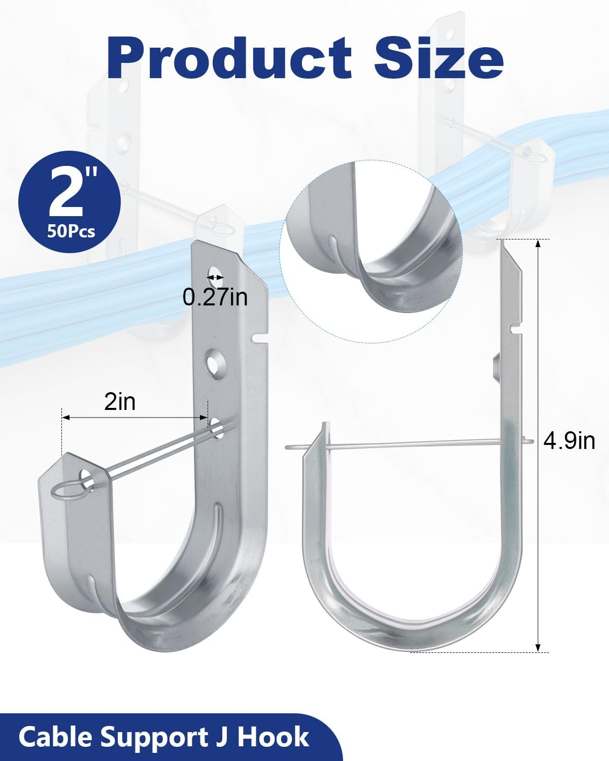 Premium Quality Material - Cable Support J Hooks are made from high-quality galvanized steel with a rust-resistant zinc finish, offering exceptional strength and long-lasting performance for secure cable management. Perfect for Large-Scale Projects: With a pack of 50 Yubyksa Cable Support J Hooks, these hooks are ideal for large-scale projects, offering a comprehensive solution for extensive cable management needs Enhanced Cable Management for a Tidy Setup: The Yubyksa J Hooks for Cable Management keep your cables neatly organized, preventing tangles and ensuring efficient routing. With retainer clips to secure cables, these hooks prevent the mess of loose wires, offering a clean and professional look for your workspace or installation area Easy Installation Installing the Yubyksa Cable Support J Hook is quick and hassle-free. The J hook comes with a retainer clip that ensures cables remain securely in place, preventing slipping or damage Versatile and Reliable Cable Support: The Yubyksa Wall Mount J Hook with Retainer Clip is designed to support a wide range of cables, including CAT5e, CAT6, CAT6a, coaxial, fiber optic cables, and conduits. Whether you’re managing cables in your home, office, or a commercial space, provide a versatile cable management solution