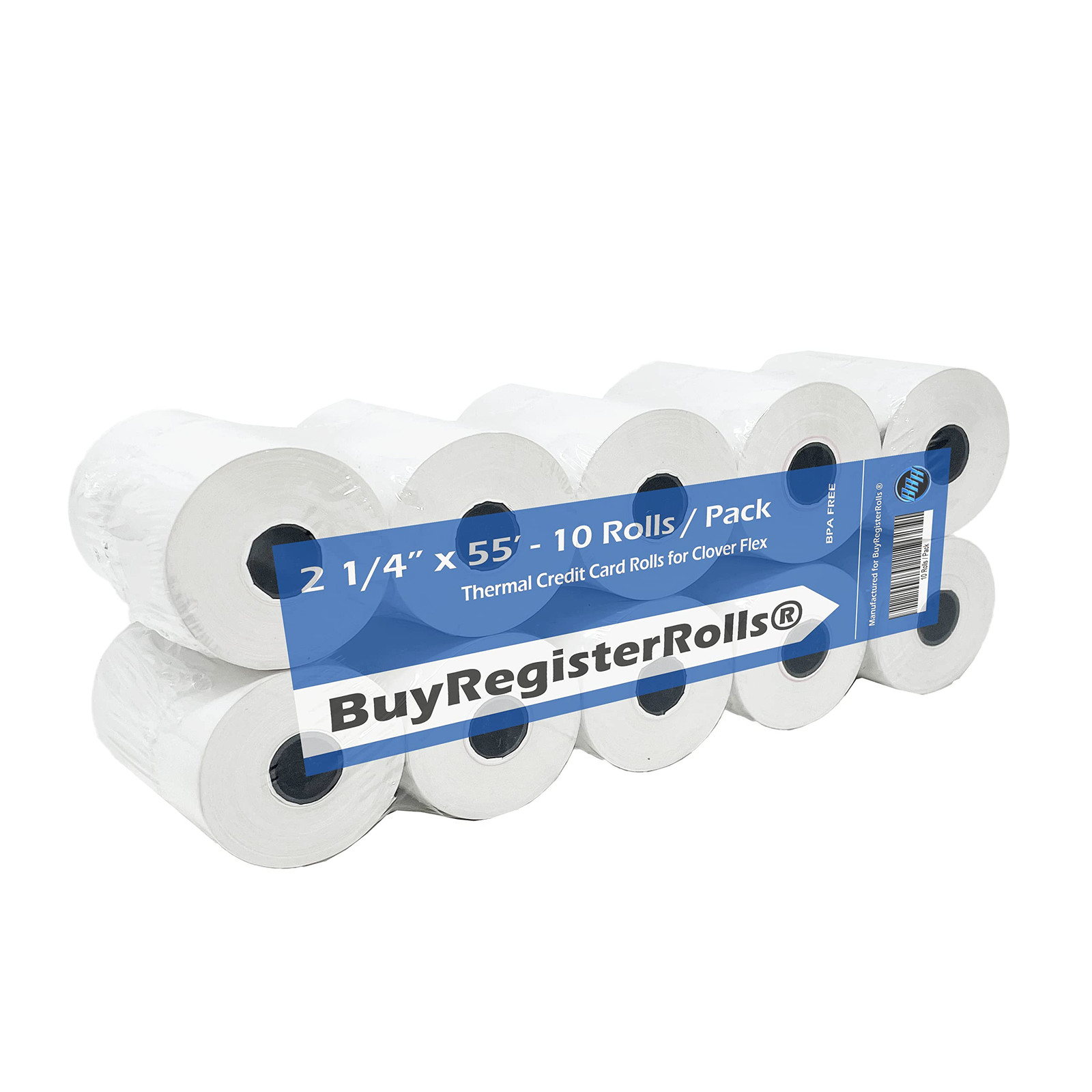 (50 Credit card Thermal Paper Rolls) 2 1/4 x 55 thermal paper rolls 50 rolls VX520 VX670 VX680 VX690, Clover Flex, Ingenico iCT220 iCT250 FD400 - 'A' Grade Premium Thermal Paper White Rolls Each Paper Rolls has an end of warning signal. No BPA Paper Premium quality 50 gsm white thermal paper rolls for crisp and clear printing