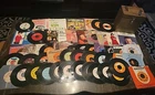 50 Vinyl Records 7" 45s RPM lot. Various artist. Various conditions, as is. Great vintage lot. Metal record 45 file box includes. Needs a new handle. As is.