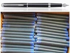 ( you won't receive the pen, just the ink cartridges) The auction is for 50 high quality, WATERMAN compatible, snap-in ink cartridges in ROYAL BLUE They'll definitely fit your HEMISPHERE model. (They are app. 2 7/8 inches long and app. .25 inches in diameter (Their shelf life is up to three years) (please read the article below if you'd like to make them last a lot longer) Almost forever. -------------- The ink is both acid free and archival safe It dries quickly and doesn't smear when gotten wet It is non toxic and pH neutral Lightfast and waterbased It won't damage your pen under any circumstances FREE SHIPPING Please allow about 10-12 days for the delivery. A tracking number uploaded in 1-2 days. There will be zero customs charges Satisfaction guaranteed Not happy? Please return them for a full refund. NO QUESTIONS ASKED ___________ Below is some interesting information about ink cartridges in general (their longevity) Inks are water solutions and cartridges are made of what seems to be polyethylene. Over a period of years, water molecules will migrate through the walls of the cartridge--it has nothing to do with whether the cartridge is sealed properly or not--it will happen anyway. This situation is roughly analogous to a balloon filled with air. After several days, air leaks through the rubber, no matter how well it is sealed. The bottom line is that cartridges have a shelf-life on the order of years. They should be fine for about 3 years or so at room temperature. They can last much longer at lower temperatures, but don't allow them to freeze--the water will expand and possibly break the cartridge. In theory, a way to make cartridges last *almost* indefinitely, would be to store them in a jar filled with water. This would *essentially* keep the water inside the cartridge in equilibrium with the water outside--i.e. about as much water would leak in as would leak out. The reason that I said *almost* is that there is a very weak force of osmosis at work. This is because there is a difference in the concentration of molecules dissolved inside the cartridge (i.e. the ink and small amounts of other additives) and outside, where there is nothing dissolved). This force will very slowly pull water into the cartridge as the exact concentrations attempt to reach equilibrium (this is the principal of dialysis). However, we are now talking about a process that would take perhaps decades. Also in theory, if the water in the bottle had the exact concentration of large molecules as inside the cartridge, the cartridge would last more than a lifetime. Chemistry in (very slow) action.