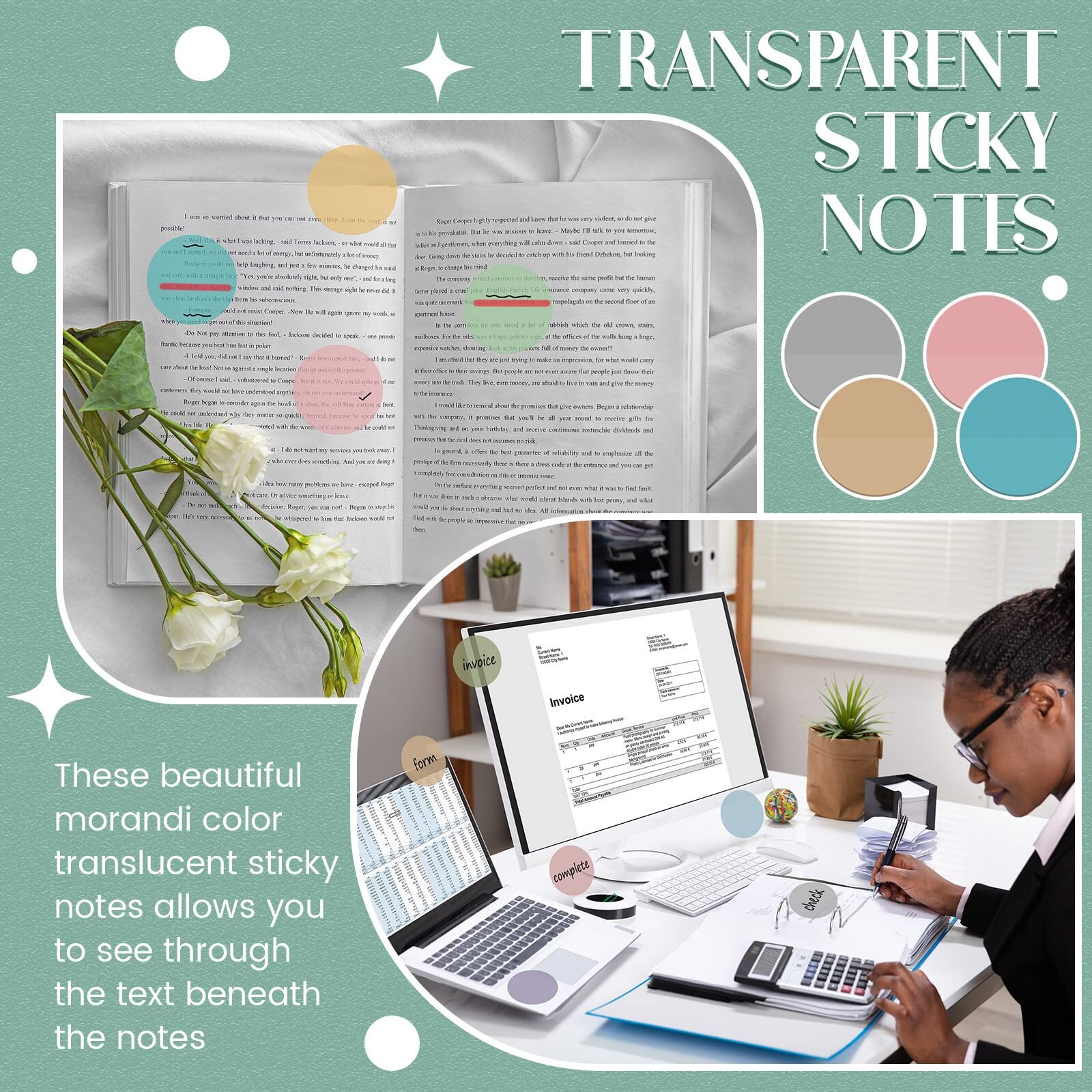 500 Pcs Morandi Transparent Sticky Notes Round Clear Sticky Notes Page Marker Features: What You Can Get: there will be 10 pieces of transparent sticky notes in 10 colors, each piece includes 50 pages, 500 pages in total; Note: the sticky area accounts for 1/2 and the diameter is 1.75 inch Quality Material: these small sticky notes are made of quality waterproof PET material, sturdy and not easy to deform, with nice adhesion on the back, which can stick well on the surface, not easy to fall off; They are also easy to peel off without leaving trace Various Colors: the translucent sticky notes adopt 10 colors, each color looks gentle and comfortable, you can also use different colors to mark different things, according to your different needs Transparent Design: the self adhesive nurse sticky notes are designed with transparent appearances, you can see the contents beneath them; The material is easy to write, you can take notes or mark on them, which brings a lot of convenience to you Wide Range of Applications: bible sticky notes are suitable for school, office, home, or anywhere you want; They can be applied for book markers, index, bible study, memo, planner, journaling, diary and so on Description: Features: Small gifts: Office supplies set can be small gifts for teachers, employees, coworkers, family members and so on. They are practical and beautiful items in our daily life. Portable design: Note taking supplies have proper size, which will not take up too much space, you can put them into your bags, and you can carry them to other places easily, bringing your convenience in daily using. Specifications: Material: PET Color: as shown on the screen Size: as shown on the screen Package includes: 10 x Sticky notes (each sticky note includes 50 pages) Notes: Manual measurement, please allow slight errors on size. The color may exist a slight difference due to different screen displays. 🌻 If you need more quantity than shown available - just send me a message and I'll increase the purchased limit for you 🌻 SHIPPING We are always working hard to ensure your package arrives as soon as possible. Please understand that some factors like weather, high postal traffic, and the performance of shipping companies are outside of our control. We offer free shipping to the lower 48 states. We do not accept P.O. Boxes. Please provide a physical address. Thank you 🌻 TRANSLATE with x English Arabic Hebrew Polish Bulgarian Hindi Portuguese Catalan Hmong Daw Romanian Chinese Simplified Hungarian Russian Chinese Traditional Indonesian Slovak Czech Italian Slovenian Danish Japanese Spanish Dutch Klingon Swedish English Korean Thai Estonian Latvian Turkish Finnish Lithuanian Ukrainian French Malay Urdu German Maltese Vietnamese Greek Norwegian Welsh Haitian Creole Persian TRANSLATE with COPY THE URL BELOW Back EMBED THE SNIPPET BELOW IN YOUR SITE Enable collaborative features and customize widget: Bing Webmaster Portal Back