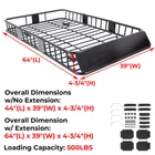 Store Categories Store Categories Car&Truck Parts Interior Exterior Lighting & Lamps Bumpers Parts & Grilles Truck Bed Accessories Snow Plows & Parts Mirrors Racks Fenders & Mud Flaps Dash Parts Business & Industrial Heavy Equipment Attachments Others Golf Cart Parts & Accessories For Club Car For E-Z-Go For Yamaha For Polaris For Star EV Motorcycle Accessories Windshields Engine Guards Seat Parts Backrests & Sissy Bars Tail Trunks & Saddle Bags Others Home & Garden ATV, Side-by-Side & UTV Parts For Can-am MAVERICK COMMANDER DEFENDER For YAMAHA For Honda For Polaris For Kawasaki For Arctic Cat Electric Bicycles Sporting Goods Other Product Gallery Details Product Description This Universal roof rack you can store hauling extra luggage, camping equipment, cargo bags and more. Built for the outdoor adventurers lifestyle. Easy to install with 4 universal U-bolts. The bottom metal bars and side rails provide plenty of tie down points. A steel wind fairing is also included. Carry big loads and mount accessories directly to the crossbars or straight bars of this roof rack cargo basket. Features Perfect for hauling extra cargo bags, camping equipment, luggage and much more Premium powder coated finish enhance corrosion resistance Perfect for long road trip with a large group of people or friends Heavy-duty bottom metal bars Heavy-duty sturdy steel construction Easy to assemble Bottom metal bars and side rails help keeping your belongings in place while providing plenty of tie down points Steel wind fairing is included to reducing wind resistance and noise Steel wind fairing decreases wind resistance and noise Bottom metal bars & side rails help keeping your belongings in place while providing plenty of tie down points The capacity of this roof basket is up to 250lbs Suitable for most vehicles Mounts to vehicle's cross bars w/ 4 U-bolts Black powder coated finish Extra Large size and capacity compare to others **Does Not Fit Convertibles* Specifications Color: Black Material: Steel Weight Capacity: 500LBS Surface Finish: Powder-Coated Overall Dimensions w/No Extension: 41-3/8"(L) x 39"(W) x 4-3/4"(H) Overall Dimension w/ Extension: 67"(L) x 39"(W) x 4-3/4"(H) Package list Universal Roof Rack with Extension Hardware Set Note: If you need to use it in raining day, you'd better seal every joint and screws with black silica when assemble it and also over every opening of the welds, then you can spray the whole thing with a truck bed liner . Shipping All items will be shipped out in 1 business day, no expedited service available. (USA only, Does NOT include Hawaii, Alaska or Puerto Rico, PO Boxes/APO's) Contact us Any Questions, Just feel free to contact us on eBay. We will reply you in 1 business day. Declaration Shipping About Us Declaration This item is not a licensed Honda/Yamaha/Suzuki/Polaris/Can-Am/Kawasaki/CF Moto/BRP/Arctic Cat/Jeep/Kubota/EZGO TXT/Club Car/Ski-Doo/Kymco/Massimo/John Deere Gator/Massimo/Bad Boy MTV/Bobcat/ product. We do not claim ownership and have no affiliation with the above-mentioned brands, copyrights, and trademarks belonging to the respective owners. Unless specifically identified as such, our use of third-party trademarks does not indicate any relationship, sponsorship, or endorsement between us and the above-mentioned brands. Any references by us (or company name) (or the seller) to third party trademarks is to identify the corresponding third party's goods and shall be considered nominative fair use under the trademark law. Shipping All items will be shipped out in 1-2 business days, no expedited service is available. We ship our items to the USA only now. (Does NOT include Hawaii, Alaska, or Puerto Rico, PO Boxes/APO's .but will support sooner ). About Us This great brand originated from a Kid who was obsessed with machinery. Compared with the finished products, he prefers the process of splicing and assembling. To challenge more difficult projects, he made full use of his leisure time to acquire the essential knowledge. After graduation, an idea came to him: why not make this hobby for a living? And it worked. He started helping his neighbors repair cars at the garage. During the time, he noticed that many expensive parts should be at a low-cost level and easy to be produced, so it‘s worth having a try about the DIY motor parts. That's the start of "KOJEM". With the growth of his career, he had not only acquired more professional knowledge but also access to high-quality and low-cost suppliers around the world. Until now, his KOJEM has helped millions of car enthusiasts experience the joy and fulfillment of assembly at a lower price under the belief of "keen on joy, explore machinery". Store Categories Store Categories Car&Truck Parts Interior Exterior Lighting & Lamps Bumpers Parts & Grilles Truck Bed Accessories Snow Plows & Parts Mirrors Racks Fenders & Mud Flaps Dash Parts Business & Industrial Heavy Equipment Attachments Others Golf Cart Parts & Accessories For Club Car For E-Z-Go For Yamaha For Polaris For Star EV Motorcycle Accessories Windshields Engine Guards Seat Parts Backrests & Sissy Bars Tail Trunks & Saddle Bags Others Home & Garden ATV, Side-by-Side & UTV Parts For Can-am MAVERICK COMMANDER DEFENDER For YAMAHA For Honda For Polaris For Kawasaki For Arctic Cat Electric Bicycles Sporting Goods Other Product Gallery Details 500LBS 64" Universal Roof Rack Cargo Basket Car Rooftop Baskets Luggage Storage Product Description This Universal roof rack you can store hauling extra luggage, camping equipment, cargo bags and more. Built for the outdoor adventurers lifestyle. Easy to install with 4 universal U-bolts. The bottom metal bars and side rails provide plenty of tie down points. A steel wind fairing is also included. Carry big loads and mount accessories directly to the crossbars or straight bars of this roof rack cargo basket. Features Excellent performance: The roof rack made of heavy-duty steel is black powder-coated, which is more sturdy, durab