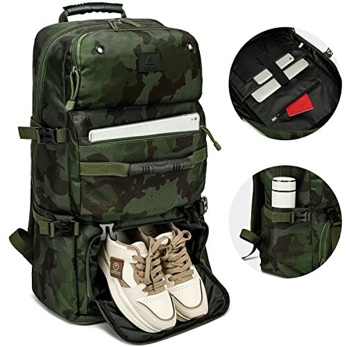 Return Policy Fast Delivery Trusted seller 50/60L Travel Backpack, Camo Laptop Backpack for Men Large Capacity Military Tactical Hiking Backpack with Shoe Compartment Expandable Outdoor Canvas Rucksack for Travel Camping Climbing Product Description 50-60L EXPANDABLE HIKING BACKPACK: This large travel backpack can be expanded through the bottom zipper to switch from a 50L backpack to a larger capacity 60L backpack. Before extended is 15*9*23.6 inches; after extended is 15*9*28.3 inches. It is suitable for short trips of 3 to 7 days. LARGE CAPACITY TRAVEL BACKPACK: Laptop backpack for men comes with a multifunctional pocket that meets all your needs. 1 large main compartmnet, 1 shoe compartment, 2 zipper pockets, 2 side pockets, and 1 back anti-theft pocket. Inside the main pocket, t is also 1 laptop compartment (Fit for 17 inch laptops) , 1 tablet pocket, 1 zipper pocket, and 1 big zipper mesh pocket. INDEPENDENT SHOE COMPARTMENT: T is an independent shoe compartment at the bottom pocket of the carry on backpack, that can hold shoes and dirty clothes. The front of the 17 inch laptop backpack is equipped with MOLLE webbing, throughout for attaching additional pouches, hooks or other small gadgets. It can be used as outdoor tactical backpack or hiking backpack, etc. DURABLE & COMFORTABLE & WATER RESISTANT: This travel laptop backpack made of high quality classic canvas, which will not scratch or tear but also water resistant & heavy duty. It's a very durable backpack. The back and shoulder straps of the canvas backpack are made of high-density soft foam, and adjustable chest straps for your comfort. MULTIPURPOSE RUCKSACK: casual rucksack backpack is ready for you to organize all of your gear and equipment. It is an absolute must-have for everyone who is frequently camping, hiking, climbing, hunting, trekking, traveling, backpacking or someone who is a fan of outdoor, survival adventures! It also be used as military tactical backpack. It is perfect for men and women. Shipping Returns Payment Shipping Shipping is FREE to all addresses other than APO/PO boxes in the lower 48 states. All our stock ships from US-based warehouses. Shipped via USPS or UPS (depending on location and package weight) Unless stated otherwise, all orders will ship within 24-72 hours of your payment being processed. Check our feedback to see the great reviews of FAST shipping we offer. Returns Seller does not accept returns Payment We currently accept payment via eBay managed payments only. Once payment is cleared, we will dispatch your shipment within 1-3 business days. Please refer to the "Shipping" tab for more information regarding shipping speed to your destination.