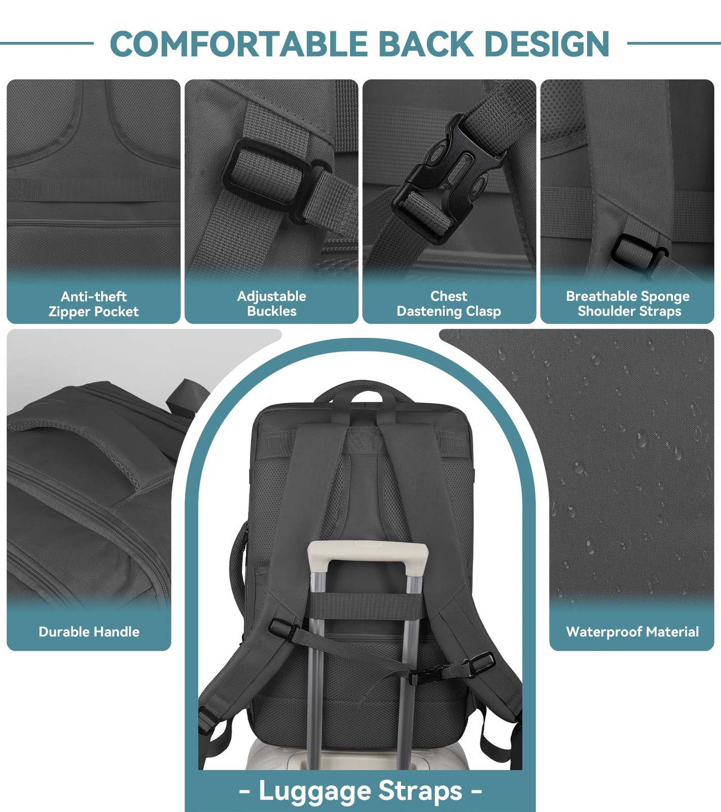 Travel Backpack, 50L Expandable Extra Large Laptop Backpack, Carry On Backpack šćFriendly Customer ServicećWe provides Lifetime worry-free after-sales service of this travel laptop backpack. If you have any problem about our carry on backpack, please do not hesitate to contact us, we will do our best to resolve it. (THIS ITEM IS NOT INTENDED FOR USE BY PEOPLE 12 AND UNDER.) šćReduce PressurećNormal Size: 19.6 * 12.9 * 5.9 inch; Expanded Size: 19.6 * 12.9 * 9 inch.The travel laptop backpack for men women equipped with adjustable chest straps, air-mesh ventilated back panel, can effectively relieve the pressure on the shoulder and neck.The backpack travel has a thickened sponge handles and shoulder straps provide you with more comfort when you are carrying and gripping the travel laptop backpack. šćExpandable & Large CapacityćThis large travel laptop backpack is designed to be expandable, backpack for travel giving you a large capacity pack up to 50L, unzipping to get larger storage space. The carry on backpack for men women fits overhead and under seat while on state of standard carry on size, ideal for business or weekend travel, and easily carried on most flights. šćAirline Approved & Practialć: The large travel laptop backpack airline approved can be freely unfolded 90-180 degrees, allowing you to quickly pass through airport security and keep things tidy. The luggage strap on back allows the mens carry on backpack for travel to securely slip over the handle of any rolling luggage for hands-free transport, easier carrying. A perfect travel gifts for men women. šćUSB Charging Port & Headphone HolećCarry on backpack built-in USB Charging Port and headphone outside hole design. This travel laptop backpack is convenient to charge your phone(Note: POWER BANK is not included). Headphone jack provide a hole to enjoy the music while walking. Large Travel Laptop backpack for men are durable, protective and specially designed to accommodate and protect laptop computers, office supplies, luggage. The rucksack backpack very suitable for commuting, office work, business trip, traveling, working. Your laptop, MacBook, office documents, ID cards, keys,Laptop will be stored and easily accessible Shipping We offer FREE shipping on all orders! We ship within Three business days of payment, usually sooner. We use a selection of shipping services such as UPS, FedEx, USPS etc. We only ship to the lower 48 states, no APO/FPO addresses or PO Boxes allowed. Local pickups and combined shipping options are not provided at this time. Return You can return a product for up to 30 days from the date you purchased it. Any product you return must be in the same condition you received it and in the original packaging. Please keep the receipt. Payment We accept payment by any of the following methods: PayPal Please pay as soon as possible after winning an auction, as that will allow us to post your item to you sooner! Feedback Customer satisfaction is very important to us. If you have any problem with your order, please contact us and we will do our best to make you satisfied. Contact Us If you have any queries, please contact us via ebay. We usually respond within 24 hours on weekdays. Please visit our eBay store to check out other items for sale! Thank you for shopping at our store.