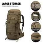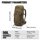 Durable Material:This 50L backpack is made of 600D Polyester and includes a RAIN COVER,the buckle and zipper are all made of YKK MOLLE Webbing:This internal frame backpack can hang on small items, or for attaching additional tactical pouches or gear Quickly Access:The survival backpack has large zipped access at front that can quickly access to the main compartment,opend as a luggage Customizable Comfort:Adjustable Padded sternum strap and hip belt , Breathable mesh bearing system design mean this rucksack can comfortably fit men, women of different body sizes Multifunctional:This tactical molle backpack with chest straps to cope with the weight so that it's well used as a 3 day assault pack,bug out bag,survival backpack,army backpack,trekking backpack or day pack,and it is a nice choice for Gift