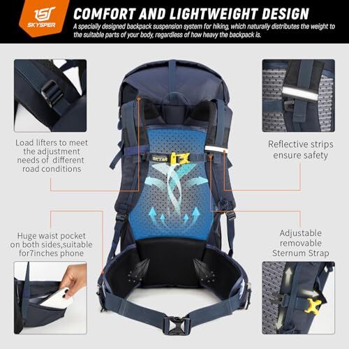 This 50L roll-top backpack is a game-changer for hiking and travel! Lightweight yet spacious, it fits all my gear comfortably. The breathable design keeps my back cool, and the navy blue looks sleek. Super sturdy and easy to adjust—perfect for long trips. Fast shipping too! Highly recommend for outdoor adventures.