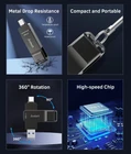 【2 in 1 DUAL USB C & USB A FLASH DRIVE】Dual Flash Drive with USB-C USB C 3.2 Gen2 port and USB-A port makes it easier to transfer data between your smartphone/tablet and computer. Instantly free up space or quickly transfer pictures or movies on OTG-enabled Android Type C phones, tablets, Mac-Books, Windows computers, car audio systems, smart TVs and more. 【ULTRA-FAST TRANSFER SPEEDS】The USB 3.2 Gen 2 Solid State Flash Drive delivers read and write speeds of up to 1000mb/s, which is up to 20 times faster than traditional USB 3.0 flash drives and memory sticks. Lets you quickly transfer high-resolution photos, videos and large files. Note: Based on internal testing, performance may vary slightly depending on factors such as host device, interface and usage conditions. 【Plug and Play Pendrive】Dual usb drive supports plug and play with no software to install. At the same time, the USB C SSD flash drive can expand the capacity of your cell phone and computer. Convenient for file sharing, data transfer and video playback when you are working or studying. 【UNIVERSAL COMPATIBILITY】Hi-Speed USB Storage Flash Drive is compatible with computer devices, smart TVs, car stereos, smartphones, iPads, laptops, Mac-books, and the iPhone 15. backward compatible with USB 3.0 and USB 2.0 ports. Works with most systems such as Windows/Linux/Mac OS./Android (not compatible with lightning port) 【SAFE AND RELIABLE EXTRA HARD DRIVE】SSD external hard drive is made of high grade zinc alloy casing with excellent shock resistance and fast heat dissipation for better data protection. Friendly Customer Service. If you have any questions, please feel free to contact us. Note: Some cell phones OTG is off, you need to turn on the OTG function to use it. 【Values Your Feedback 】30-day money-back guarantee, lifelong friendly customer service. If any query about usb momery stick, just contact us for further help before returnning. NOTE : Some mobile phones need to open the OTG function in advance before use, otherwise the external drive cannot be detected.
