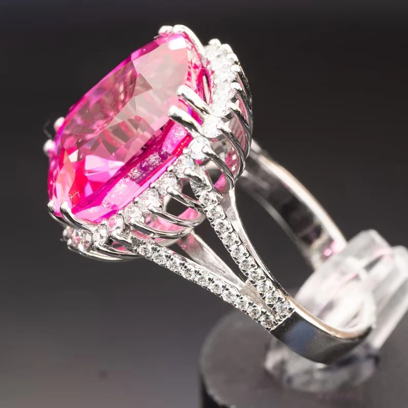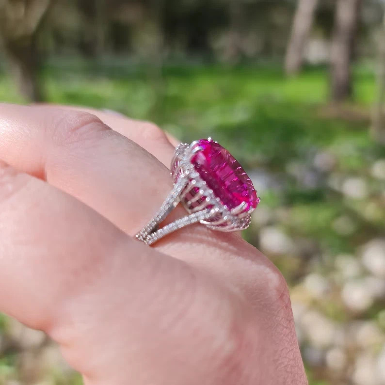 4.65 Ct Radiant Cut Natural Pink Sapphire Diamond Ring 14K White Gold