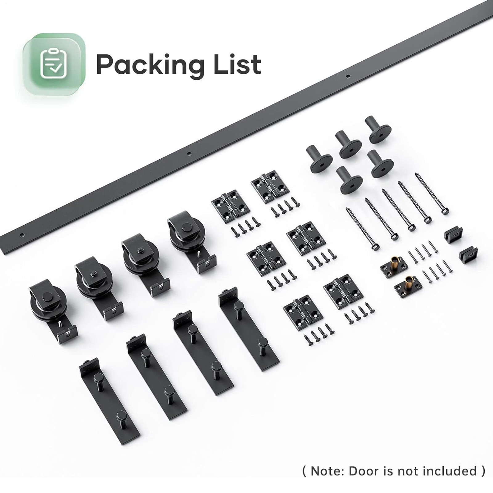 Store category Sign Up Now ! You may also like Product Description Bullet Points: Durable and Reliable: Designed with wear-resistant, high-quality carbon steel and equipped with rollers using a combination of reliable bearings and nylon wheels, our sliding barn door hardware kit provides a durable, anti-rust movement on 6mm thick tracks. Time-Saving and Space-Saving: Install our barn door hardware kit to save space and time by easily transforming your folding doors; the perfect solution for any household seeking a stylish and efficient upgrade. Helpful and Useful: Our sliding barn door hardware kit makes your life more convenient with easy access. Suitable for door thickness of 1-3/8 to 1-3/4 (35mm to 45mm), the full set is perfect for transforming spaces and bringing style and functionality to your home. Simple Installation: Our sliding door hardware kit ensures an intuitive installation process, complete with a detailed manual featuring both illustrations and text for clarity. Widely Suitable: With its versatility and style, this sliding barn door hardware kit is a perfect addition to your home, restaurant, or study area. Widely applicable and equally dynamic, it can improve any living space to a whole new level of adaptability. Our sliding barn door hardware kit is strong and saves space in your house. It brings you convenience in daily life and is widely used in a variety of living situations. Easy to install and operate, this sliding door hardware kit is a must-have for any home or barn. Specifications: Colour: Black Material: carbon steel Product Size: Track size: about 52 inches (132CM) Track splicing method: 4 pieces Scope of application: Door panel thickness of about 0.5-50MM Packing List: 4x FT track 4x roller 4x roller swivel stand 2x roller holder 5x pipe clamps 6x hinge 2x ground guide fixings 2x sealing strip 1x screw pack 1x Manual Notes: 1. Due to the lighting effects and photographing angles, there is a color difference in the product, please understand. 2. Due to manual measurement, there is a tolerance in the product size. Payment Delivery details Terms of sales About us Feedback & DSRs Payment Before you palce an order, please kindly make sure that you have a paypal account. We accept PAYPAL payment only. Payment should be completed within 2 days after auction closed, or unpaid dispute will be filed for an closing auction. An unpaid case will be filled after 4 days. Delivery details We ship to your eBay address. Each package will be shipped to US by UPS Regular Parcel with tracking number. Please check your shipping address carefully before checkout, it can't be changed if order completed. All items will be shipped within 1-2 business day upon receipt of payment.Orders placed on weekend will be shipped within 3 days. If you do not receive your item in 7-10 business days.please contact us immediately for further assistance. We will be responsible for any damages or losses incurred in the shipping process. About us We maintain high standards of excellence FIVE STAR and strive for 100% customer satisfaction! Positive Feedback is very important to us. We hope that you contact us immediately Before you give us neutral or negative feedback, so that we can satisfactorily address your concerns. We promise to offer the lowest price and high quality produce. Our working time: From Monday to Friday(9:30 am to 18:00pm), we don't working on holidays ,hope you can understand and know that , thank you. Please always talk to us via ebay Message. We appreciate your business and look forward to growing our e-Bay sales with satisfied customers. Feedback Contact us If you have any questions, please feel free to contact with us by ebay Message during our business hours ( 9:30a.m. to 5:30 p.m.), or email us through eBay, we will try our best to help you to resolve it. For any presale or after-sale questions,please do feel free to email us! Due to the time difference, each email will be replied within 1 working day,and weekend will be delayed a bit. Feedback
