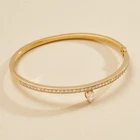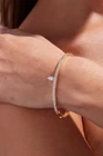 This elegant bangle bracelet features a 5.4 Ct pear-shaped simulated diamond set in 925 yellow sterling silver. The closure is a push lock, and the bracelet is adjustable for a comfortable fit. The design includes engraved details and is handmade with eye-clean simulated diamonds. The bracelet is 7.5 inches in length and features a charming and customizable design suitable for occasions such as engagements, weddings, anniversaries, and birthdays, making it a versatile and stylish accessory.