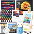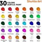 54 PACK COMPLETE SET : Shuttle Art 54 pack acrylic paint set contains 30 colors acrylic paints (12 ml tube) and 1 foldable wooded easel, 12 paint brushes, 3 painting knives, 3 painting canvas(8x10 inch), 1 acrylic pad, 1 mixing palette, 1 water bucket and 2 art sponges. Complete acrylic paint kit includes everything you need for painting PREMIUM QUALITY : Artist grade acrylic paint bring bright colors, thick and creamy texture, as well as incredible consistency to painters. Foldable wooden easel, brushes and mixing palettes are reusable for many years when well-preserved. Conforms to U.S. ASTM D-4236 & EN71-3, non-toxic and acid-free, safe and suitable for all ages COMPLETE PAINT SET : Multi-size shaped paint brushes, art knives and painting canvas bring more creative possibilities. Large-capacity water bucket makes it easier to wash brushes. Adjustable wooden easel make painting much easier and more professional. We've got everything for you PREFERRED GIFT : With 30 rich colors acrylic paints, abundant tools and painting accessories, this art painting set is a great starter kit for both kids, adults, beginners, professional artists and anyone who loves art. Great for yourself, or as a gift for someone else On Dec 24, 2024 at 18:49:59 PST, seller added the following information: