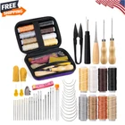 54 Pcs Leather Sewing Kit Heavy Duty Sewing Upholstery Repair Kit for Car Boots Product Description: Material upholstery repair kit Brand Branded Included Components needle threaders, thimble, seam rippers, tape measure, upholstery needles for hand sewing Upholstery Repair Kit Includes: The leather stitching kit contains 34pcs upholstery needles for hand sewing, needle threaders, seam rippers, tape measure, thimble, 8 pcs commonly used upholstery thread, leather stitching awl, scissors, fingercots, sewing kit storage bag and etc. Compact leather sewing tools come in a full range of sizes to meet your basic leather sewing needs. Leather Needles for Hand Sewing-- A wonderful upholstery leather sewing kit with the necessities you'll need for starting repairs of leather. High-quality leather needles for hand stitching, curved needles, thread, scissors, a thimble, etc. If you'd rather make repair yourself to replace items with minor damage, this is the heavy-duty sewing kit for you. Plus you will get a satisfying feeling of satisfaction when it's done! Heavy Duty Leather Sewing Kit- -Great leather sewing repair kit for DIY leather sewing projects. This is a great leather needle and thread kit for beginners or those with basic needs. It has a curved needle which is very helpful as well as metal thimbles which are essential when working with leather. If you use the sewing repair kit through super thick denim and fleece fabric and it will work great too! Upholstery Needle and Thread-- Used for repairing leather truck seats, the leather sofa, couches, canvas, shoes, leather gloves, and stitching up a backpack shoulder strap that was coming undone, worked perfectly to add more life to a very good gloves backpack! Leather Stitching Kit-- This little heavy-duty leather sewing kit is great and will meet your needs nicely. if you repair the leather recliner arm where the seam had come apart, many colors of thread in the kit are a perfect match. Suitable for car leather seat repair, leather sheaths and holsters, leather purses,s and leather handles of bags.Can also be used for leather jewelry making.
