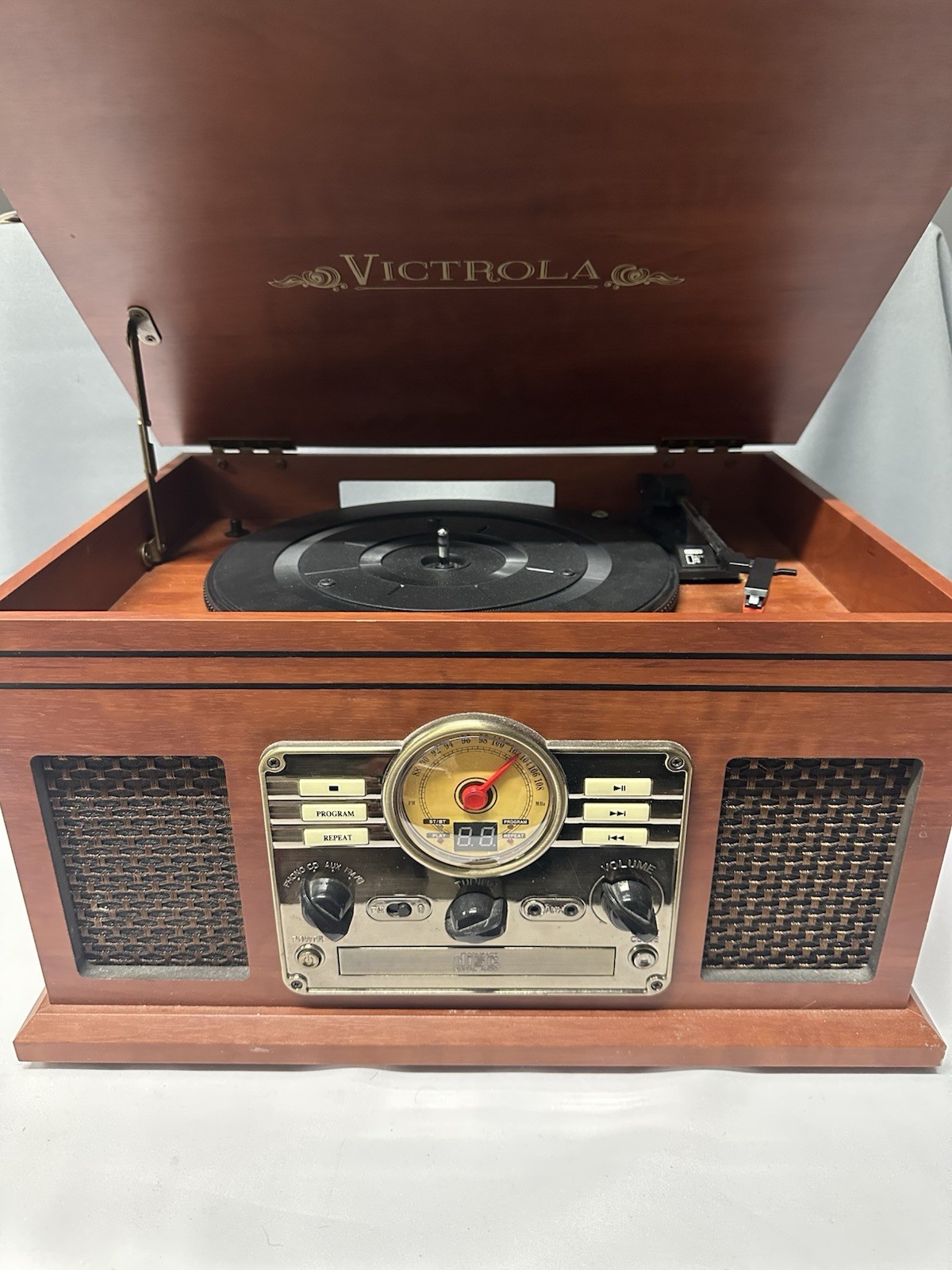 For sale is a complete vinyl setup: 54 vinyl records plus a fully functional Victrola turntable. This is a well-curated, mixed-genre collection featuring classic rock, progressive rock, metal, alternative, and modern releases. The records were clearly collected intentionally, not randomly accumulated, and include high-demand artists and titles that are consistently sought after on vinyl. πΆ Highlights include: β’ Nirvana β MTV Unplugged in New York β’ Multiple albums by Genesis (classic progressive rock era) β’ Death (legendary death metal titles) β’ Behemoth β’ Led Zeppelin β’ Prince β’ Amy Winehouse β’ Michael Jackson β’ ABBA β’ Dance Gavin Dance β’ Hail The Sun (and more across rock, metal, alternative, pop, and select classical) π Vinyl Condition: β’ Records range from Good to Very Good+ overall β’ Many covers are clean with minimal shelf wear β’ No intentionally hidden damage; this is an honest sale β’ Some records are still in protective sleeves π§ Turntable: β’ Victrola all-in-one turntable β’ Tested and working β’ Vintage-style cabinet design β’ Perfect for immediate listening or as a display piece π¦ Why this lot is special: β’ Includes multiple high-value records that sell individually β’ Ideal for a collector, new vinyl enthusiast, or reseller β’ Saves time sourcing individual albums β’ Everything needed to start listening immediately Selling as ONE LOT ONLY. Records will be packed carefully. Please review all photos β what you see is exactly what youβll receive. Feel free to message with questions or offers.