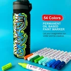 Paint Markers Pens - 54 Colors Medium Tip Markers, Permanent, Waterproof & Quick Dry, Paint Pen for Metal, Wood, Fabric, Plastic, Rock Painting, Mugs, Canvas, Glass, Art Craft Paint Pen: paint markers utilize Japanese ink that is vivid, opaque, waterproof, and quick-dry. The ink dry within a minute ensure your beautiful creations get to last for longer Versatile: Package contains 54 colors of paint permanent paint markers are the best choice to work on multiple surfaces. You can use on rock painting, ceramic, wood, leather, plastic, fabric, canvas, stone, glass, metal, chalkboard, craft supplies etc Durable Nib: Medium round nib allows smooth and precise application. Perfect for arts and crafts, DIY projects, scrapbooks, card marking, journals, calendar, planners, coloring books and more Individual Package: Each paint marker pen is packed in a separate heat shrink film to avoid leakage during shipping and storage Outstanding After-Sales Service: Every paint marker is independently tested and selected to ensure the performance you expect. Enjoy peace of mind with our 24/7 customer support. We are committed to ensuring your complete satisfaction with prompt assistance for any concerns