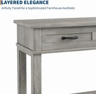 Product description Expanded Storage Capacity:This versatile entryway console table combines 3 spacious drawers (20.75"L x 12.4"H x 5.9"W) with open shelving for adaptable organization. As a key piece of living room furniture, its drawers conceal daily clutter, while the 16.85-inch tall shelves showcase decorative baskets, books, or statement pieces. Achieve a perfectly curated, clutter-free space in your entryway or living area. Engineered for Stability & Space:With ideal 54"L x 14"W x 30"H dimensions, this multifunctional sofa table offers a generous surface while maintaining a space-saving slim profile. Built with a sturdy 0.6" thick top and reinforced structure, it reliably supports up to 150 lbs, making it perfect as a heavy-duty entry table, a stable TV stand, or a versatile addition to your living room tables collection. Its adaptable design ensures seamless integration behind couches, in entryways, or alongside walls. Flawless Look, Effortless Care:This console table for entryway features hidden screws for a seamless aesthetic and a waterproof, stain-resistant top. A quick wipe cleans spills, making it ideal as a living room table or functional couch table. Sophisticated yet worry-free. Built to Last:Crafted with high-density MDF using advanced compression technology, this versatile accent table delivers exceptional stability. Perfect as a behind couch table or functional hallway table, its reinforced frame withstands daily use. The waterproof, anti-corrosion surface resists stains, ensuring long-lasting beauty in any space. Effortless Tool-Free Assembly:This console table with drawers is designed for simple setup. With numbered parts, pre-sorted hardware, and precision pre-drilled holes, the clear instructions make assembly quick and effortless. Perfect for your entry way table or entrance table needs, it requires no extra tools and fits seamlessly into your space in minimal time. GAOMON Farmhouse Entryway Table with 3 Drawers GAOMON Accent Table with Storage for Living Room
