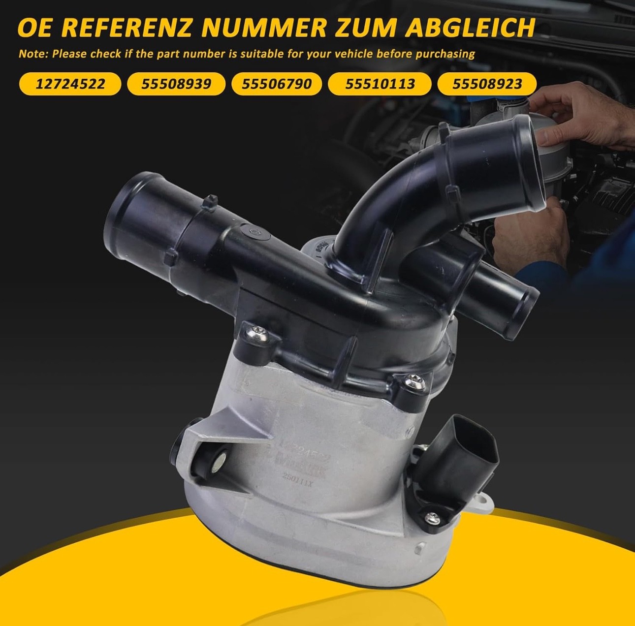 #2412 55508939 Engine Coolant Water Pump Compatible with Cadillac XT4 2019-2024, XT5 2020-2024, XT6 2021-2024, Chevrolet Blazer 2020-2024, Buick Envision 2021-2023, GMC Acadia 2022-2023 Brand GolAscen Material Aluminum, Alloy Steel Manufacturer GolAscen OEM Part Number 55508939, 55506790, 55510113, 12724522 Automotive Fit Type Universal Fit 【Replacement Number】: 55508939, 55506790, 55510113, 12724522(Note: Please check if the part number is suitable for your vehicle before purchasing) 【Compatible Models】:Compatible with Cadillac XT4 2019-2024, XT5 2020-2024, XT6 2021-2024, Chevrolet Blazer 2020-2024, Buick Envision 2021-2023, GMC Acadia 2022-2023 【High-Quality Materials】: Electric Engine Water Pump use of high-quality aluminum alloy or engineering plastic material to build the shell, with excellent corrosion resistance and lightweight characteristics, while the internal impeller, shaft and other key components selected high-strength alloy steel, to ensure that in high-speed rotation and long-term use is not easy to wear, deformation, to ensure the reliability and durability of the pump assembly. 【Working Temperature and Wear Resistance】: Bearings should be able to maintain normal operation at a high temperature of -80℃-150℃, and water seal materials and vacuum valves have good wear resistance to resist wear in long-term work. 【Importance Role】: Engine Water Pump is used for coolant pumps and temperature savers, and its structural design and material selection are crucial, with sufficient strength and stiffness to withstand the vibration and pressure of the coolant pump during operation. 【12-Month Warranty】We offer a 12-month unlimited mileage guarantee for carefully manufactured products. If you have any questions during this period, please contact us! What's in the box Electric Engine Water Pump